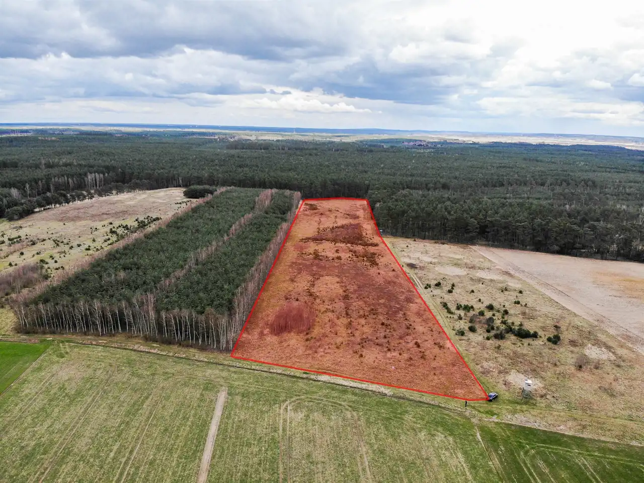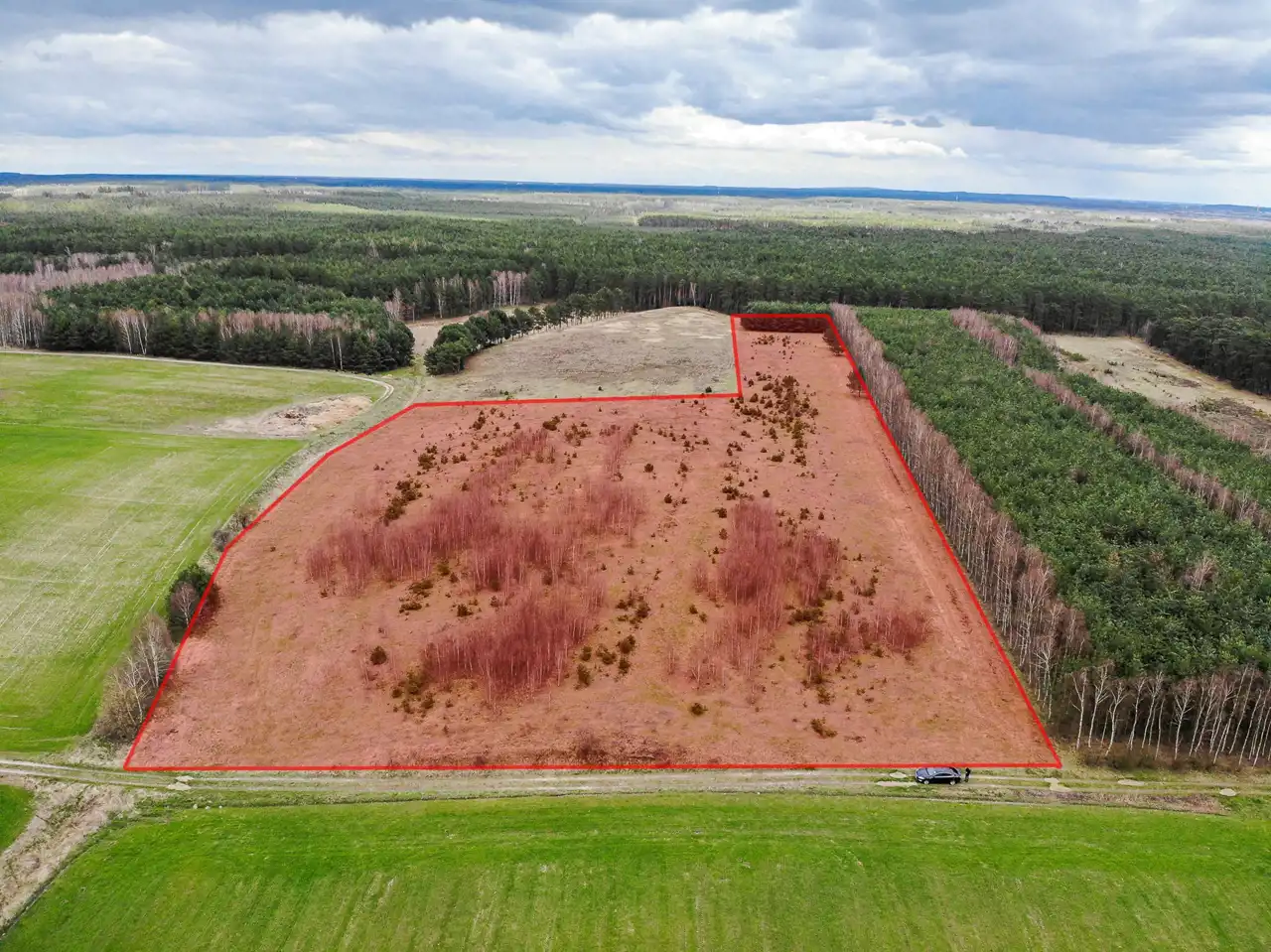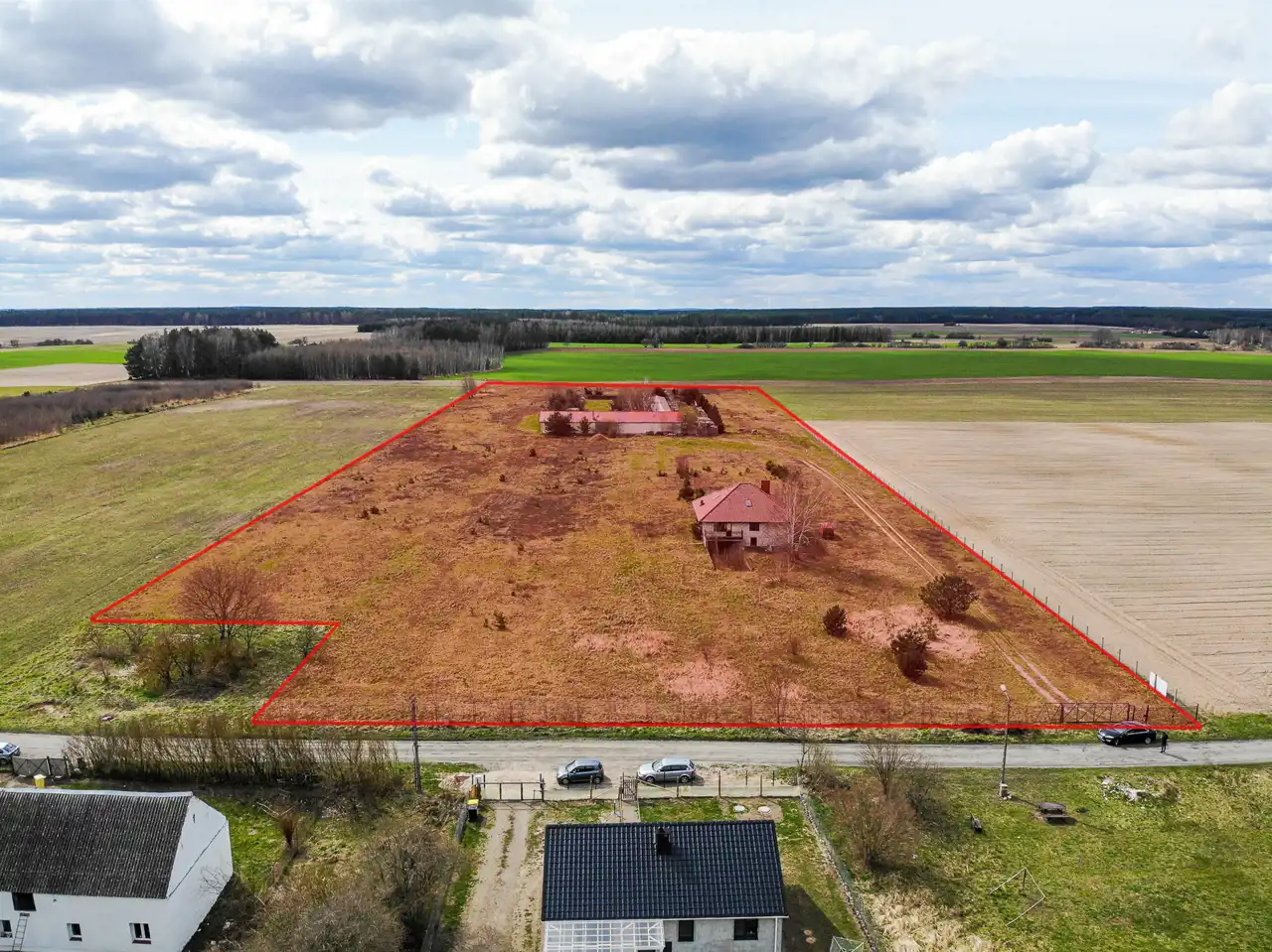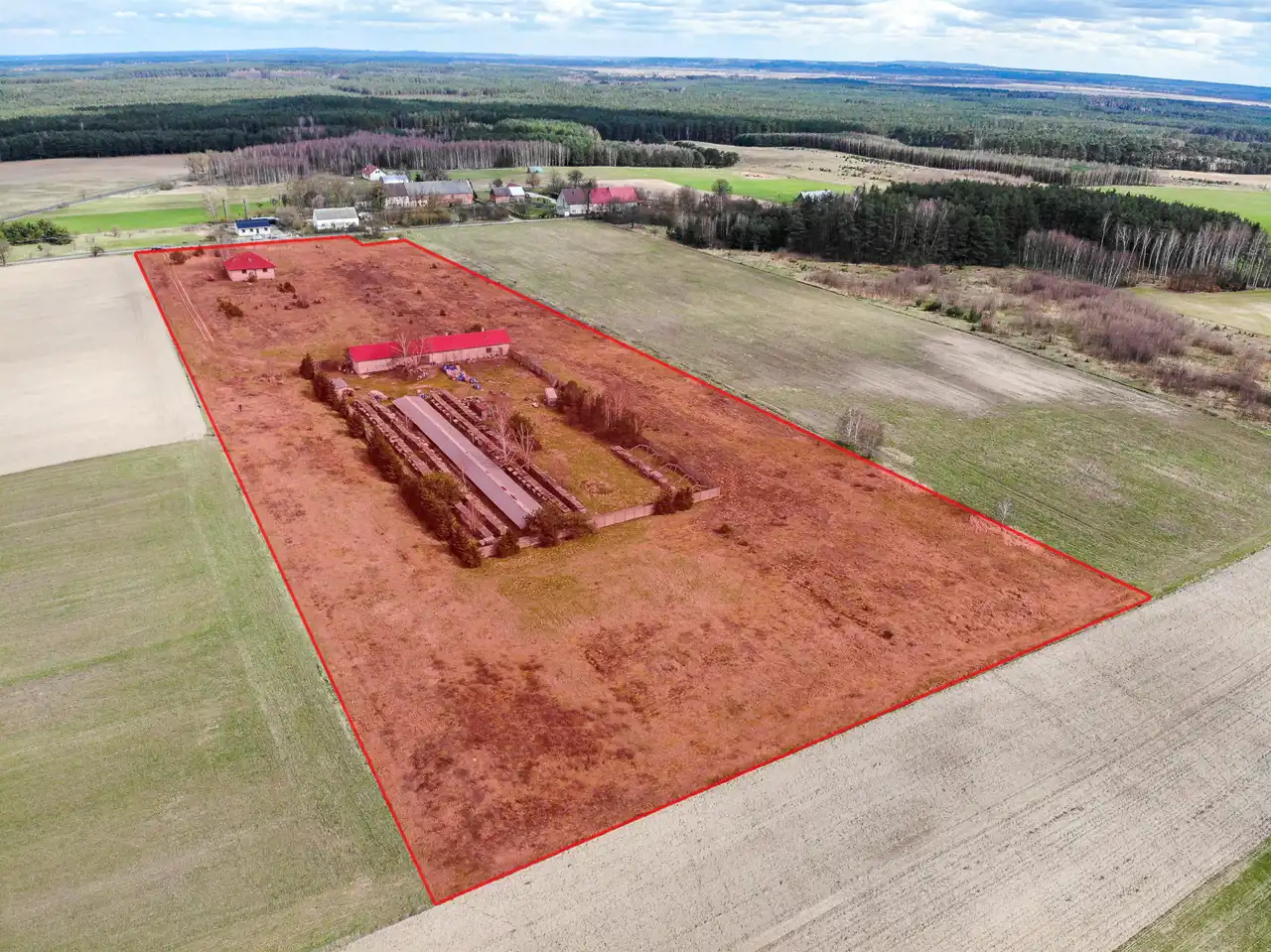 Przedmiotem oferty jest działka gruntu (własność) o powierzchni 3,92 ha zabudowana domem jednorodzinnym o powierzchni użytkowej 118,53m2 oraz budynkiem gospodarczo- magazynowym o powierzchni użytkowej 269,50m2.