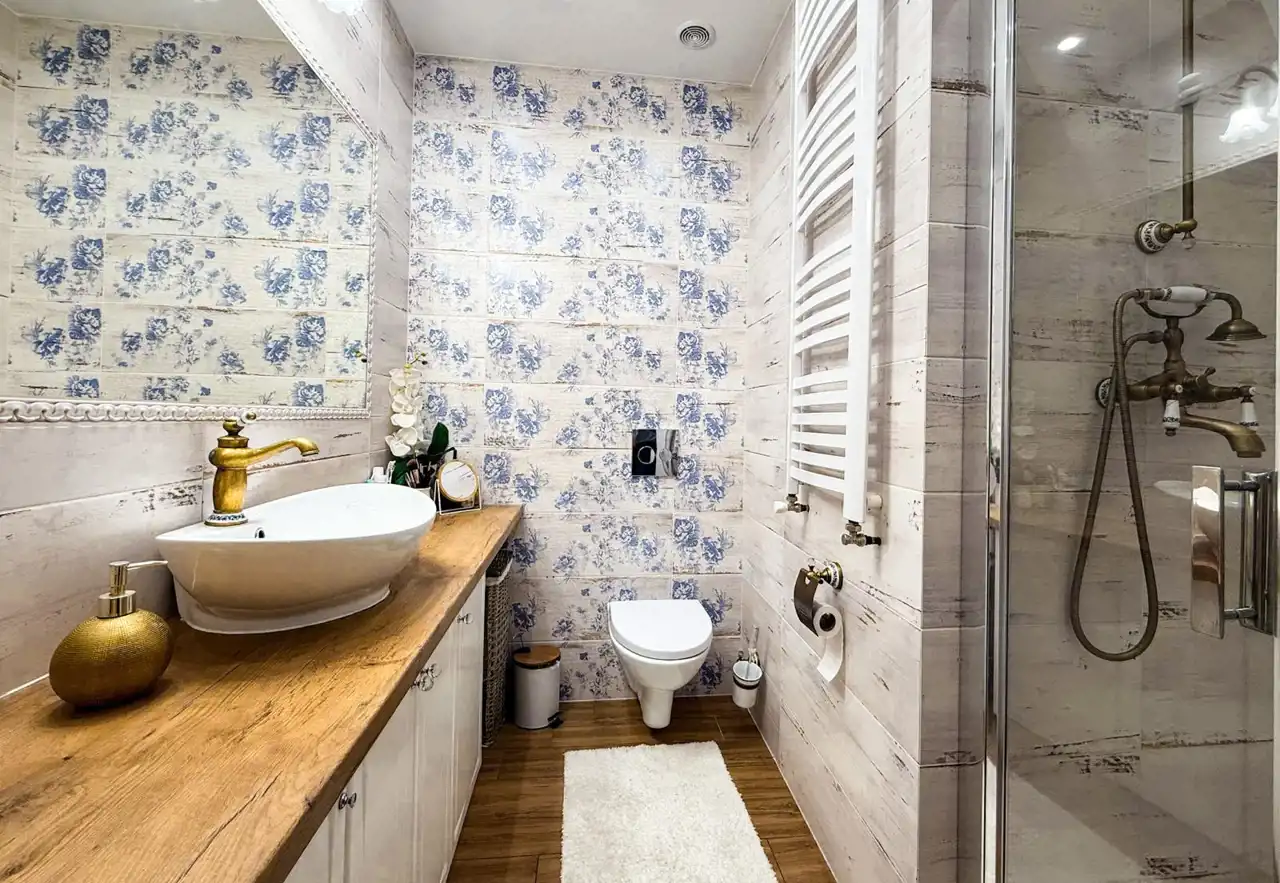 - Okna PCV, nowe wylewki, podłogi wykończone panelami i kaflami w spójnej stylistyce