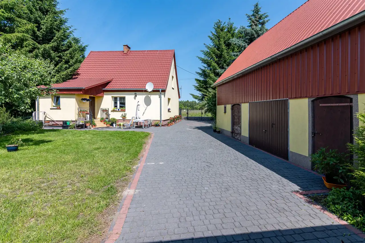 Zabudowania: dom jednorodzinny, budynek gospodarczy, wiata garażowa