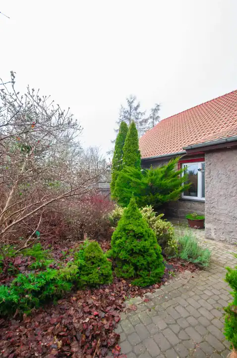 Działka w całości ogrodzona, zagospodarowana - cześciowo tereny zielone z tarasem z tyłu domu (z nasadzeniami), w pozostałej cześci teren utwardzony polbrukirm. Na działce znajdują się również budynki gospodarcze o pow. zabudowy 90m2 oraz 170m2, pozostałe zabudowania to altany.