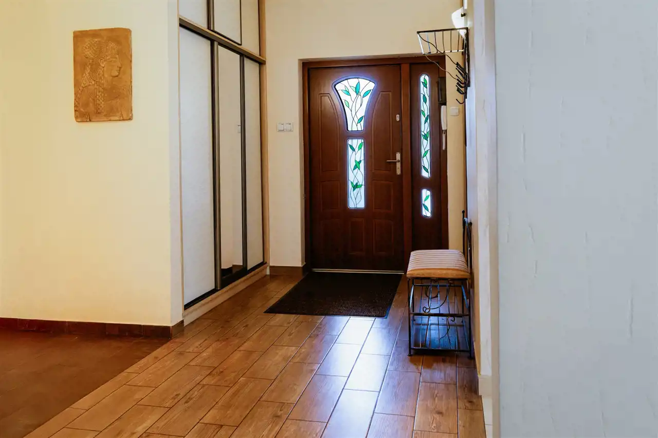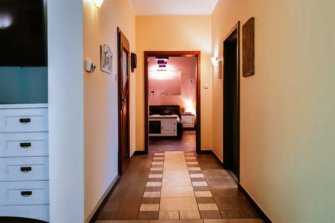 - Spiżarnia, WC, garaż i przestronny korytarz.