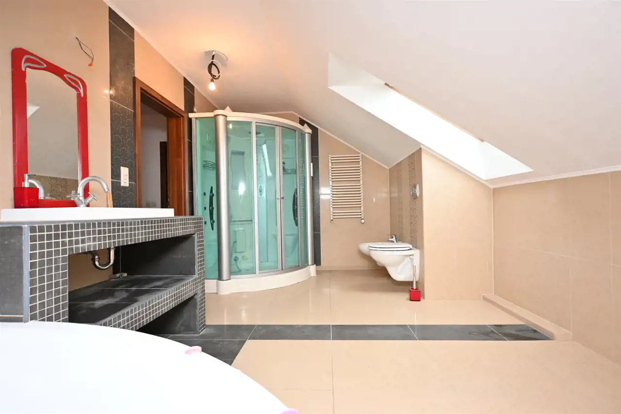 Duża łazienka o pow. ok. 9m2 z wanną i kabiną prysznicową
