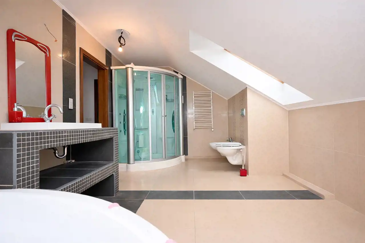 - Łazienka ok. 9 m² z wanną i kabiną prysznicową