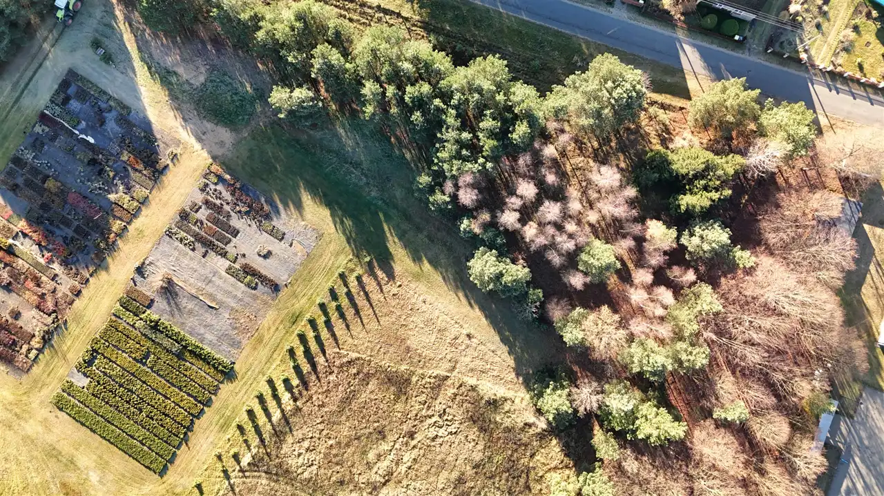 • Od strony drogi teren jest zadrzewiony, co zapewnia prywatność już od pierwszego dnia po zakupie