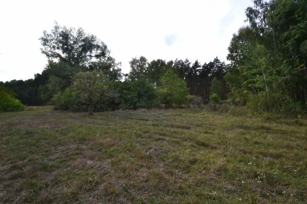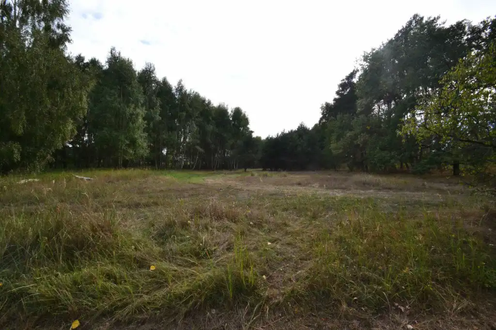 Tytułem oferty jest działka otoczona lasem. Działka w kształcie prostokąta.