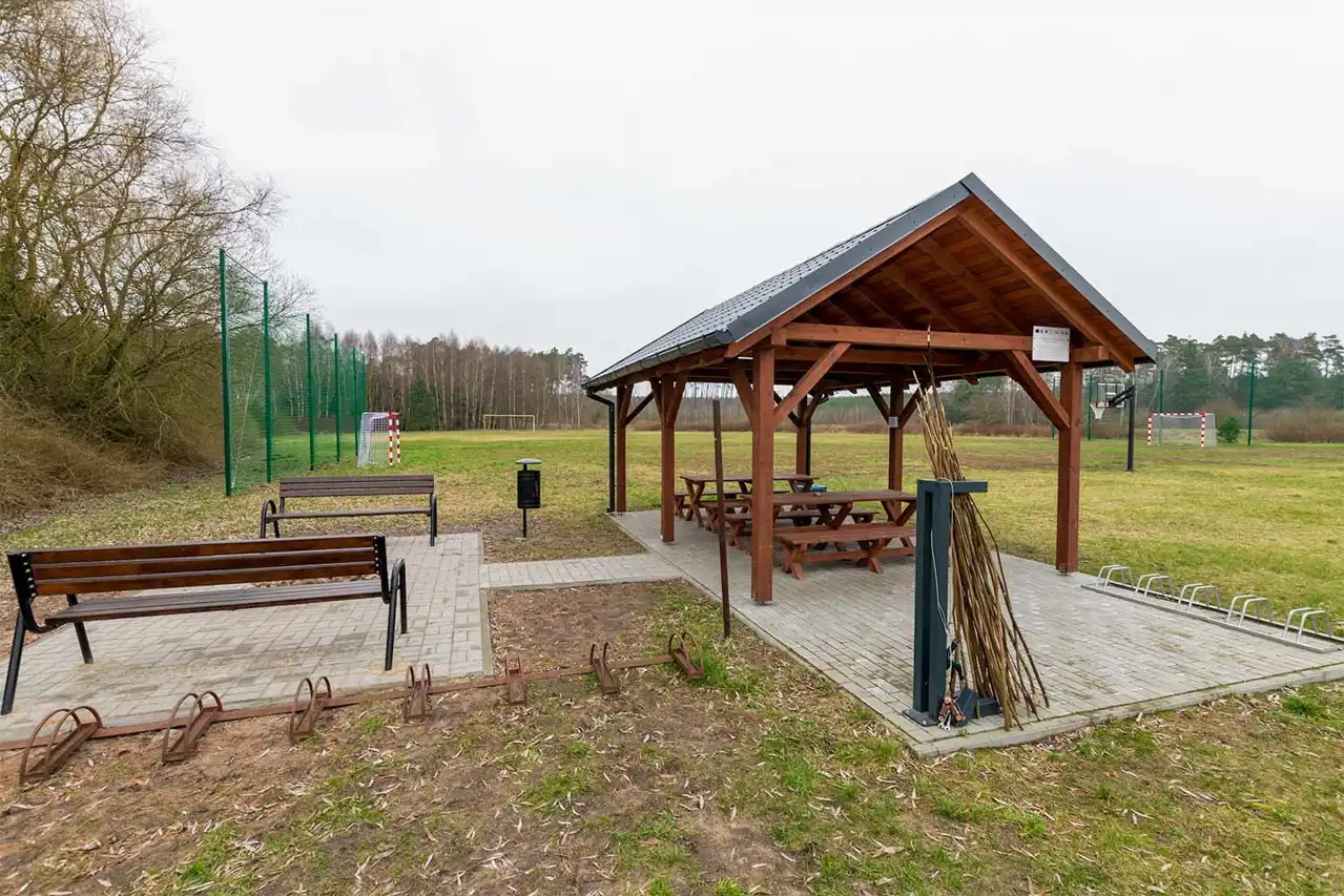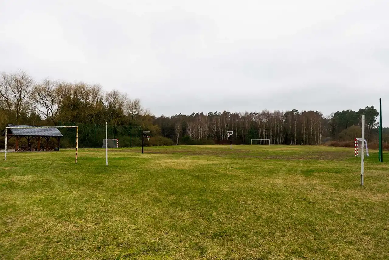 Wspaniała lokalizacja wśród lasów, przepiękne trasy spacerowe. Przed blokiem ogrodzony plac zabaw dla dzieci, a przy działkach rekreacyjnych boisko pokryte trawą z bramkami i koszami do gry w koszykówkę, wiata, ławki z miejscem na ognisko.