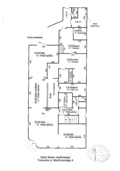 - biuro 4,40 m2 (obecnie chłodnia)