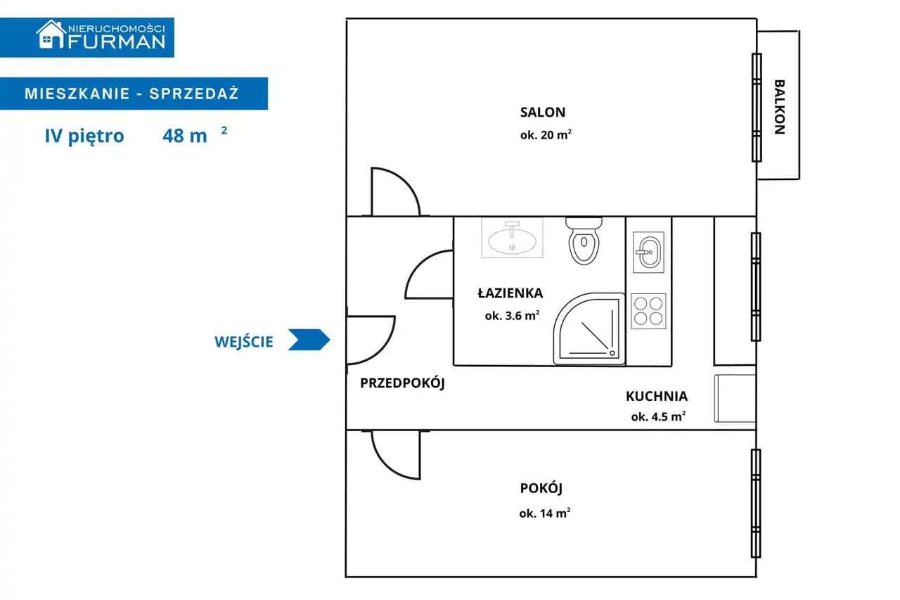 - Charakterystyka mieszkania 48 m2, 2 pokoje