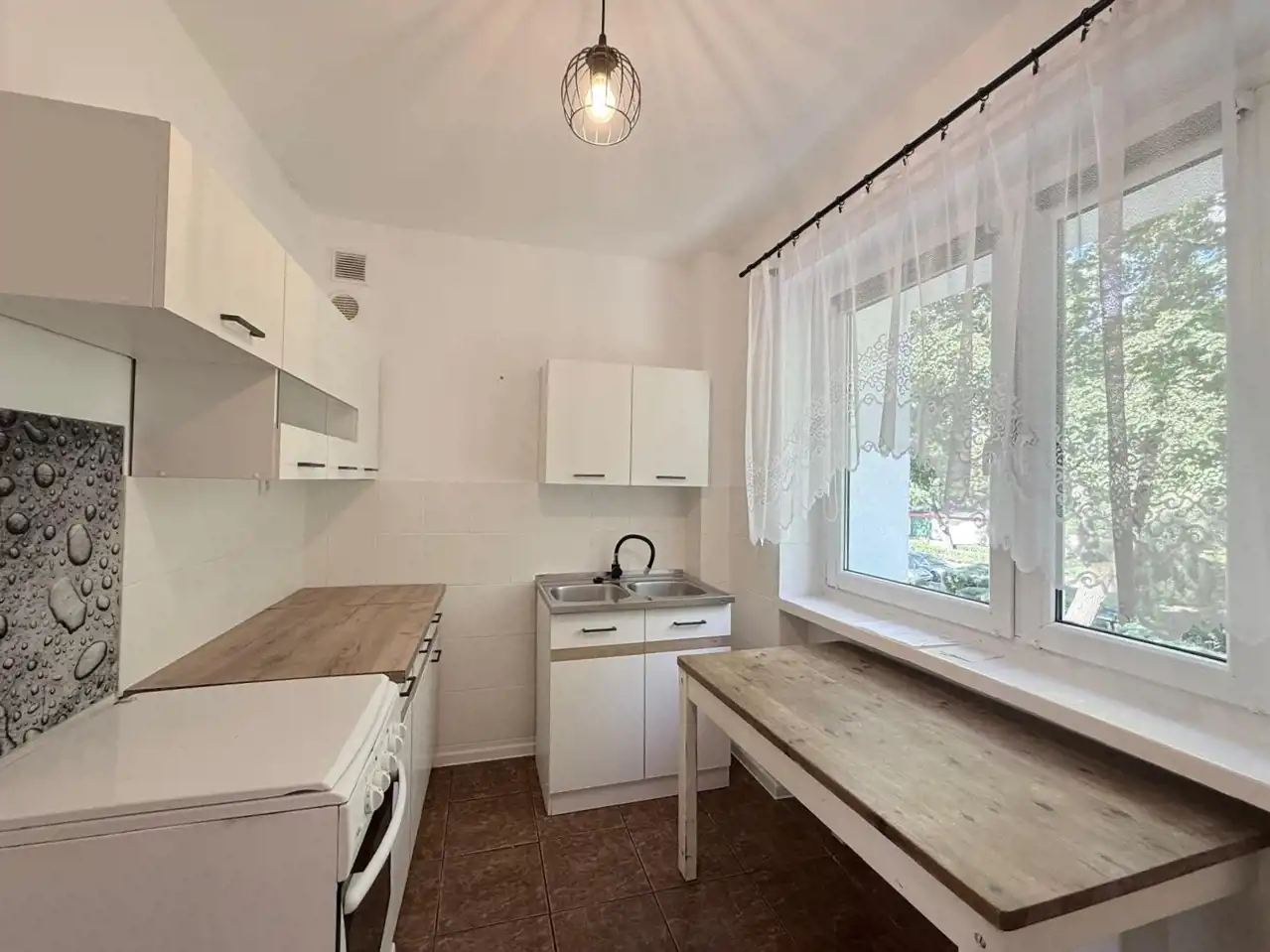 dwa ustawne, jasne pokoje, (pow. 17.00 i 15,40 m²) w tym salon z wyjściem na balkon,