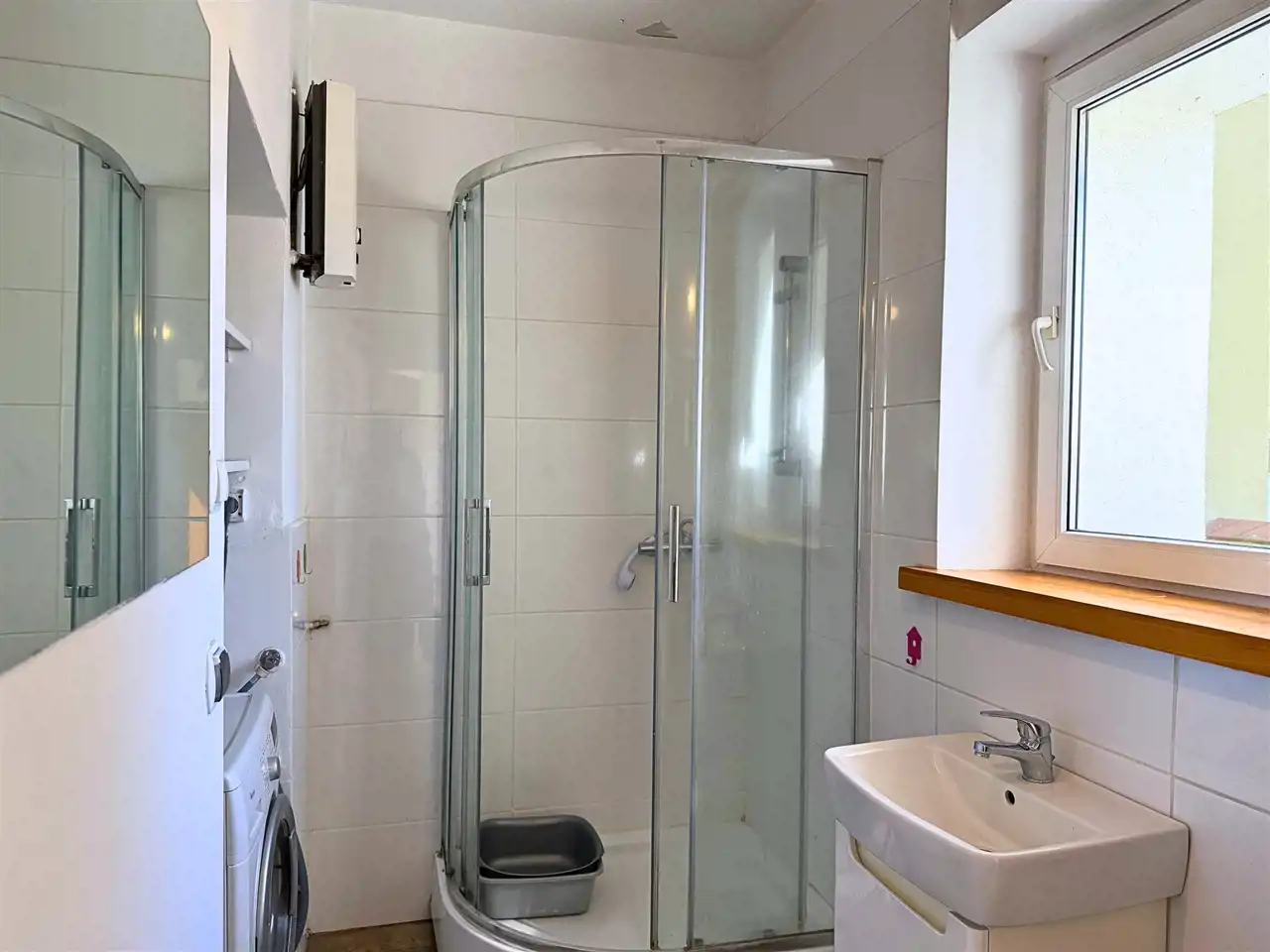 łazienka z oknem (4,33 m²) – aktualnie z prysznicem, umywalką i WC, ale do własnej aranżacji