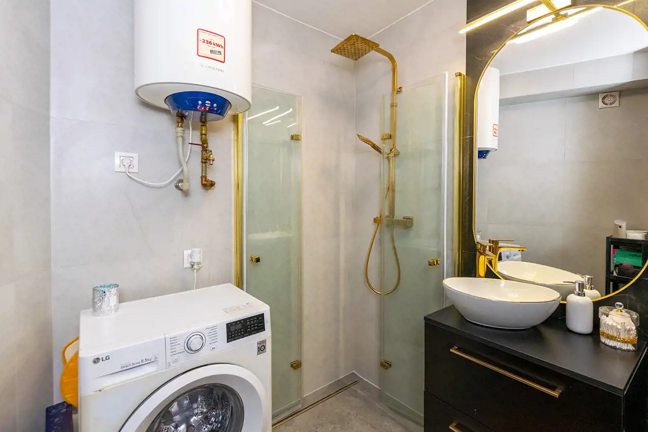 - Media Ogrzewanie: C.O. miejskie; Woda: bojler elektryczny; Gaz: jest