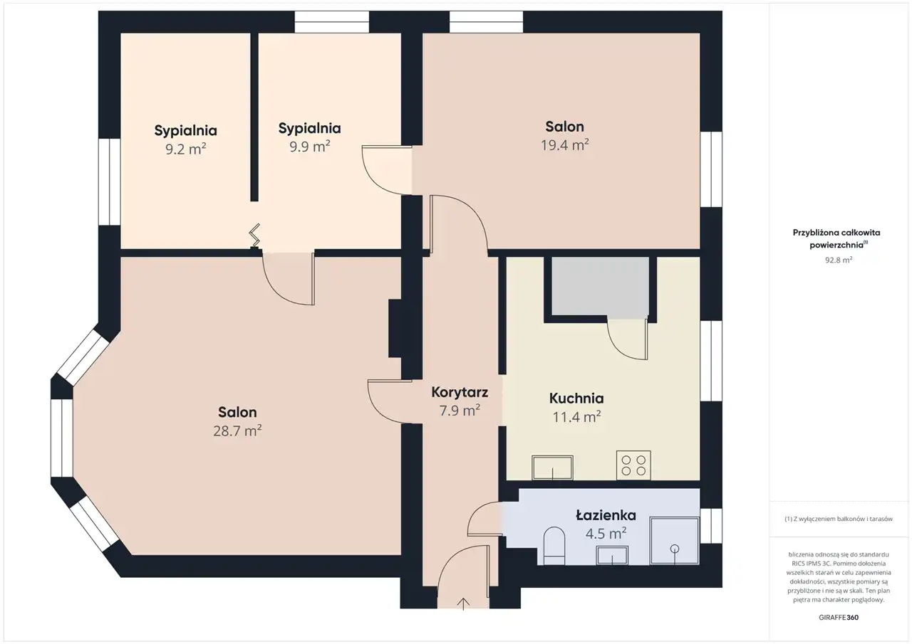 - Charakterystyka mieszkania 92.99 m2, 4 pokoje