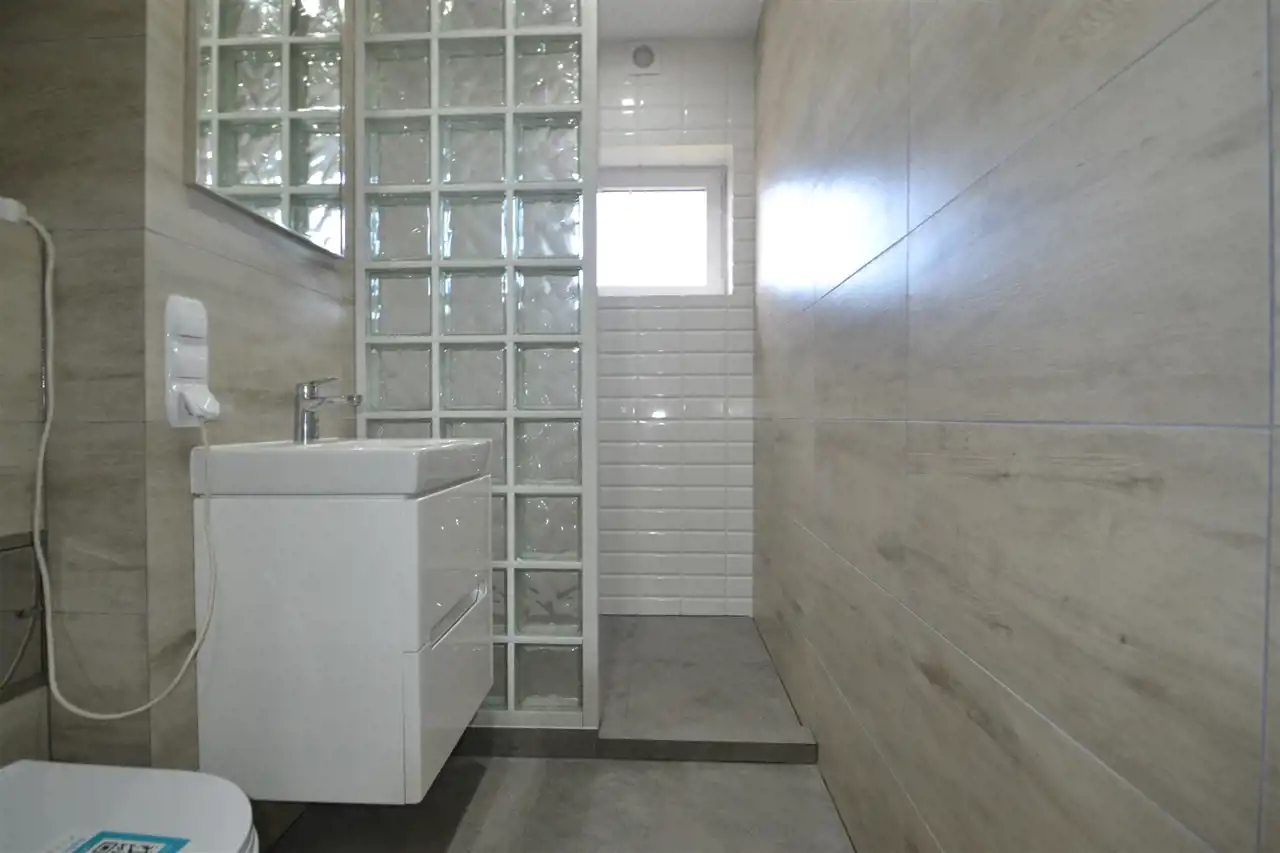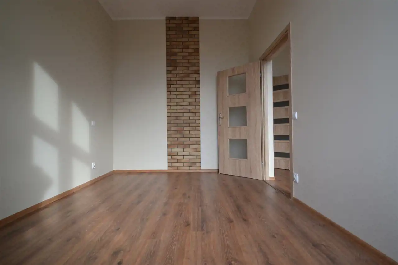 Na podłogach w pokojach panele podłogowe, w kuchni kafle. Okna PCV nowe. Pokoje oraz kuchnia wyposażone w nowe klimatyzatory z funkcją chłodzenia i grzania które są źródłem ogrzewania domu. Ciepła woda z bojlera elektrycznego również nowego.