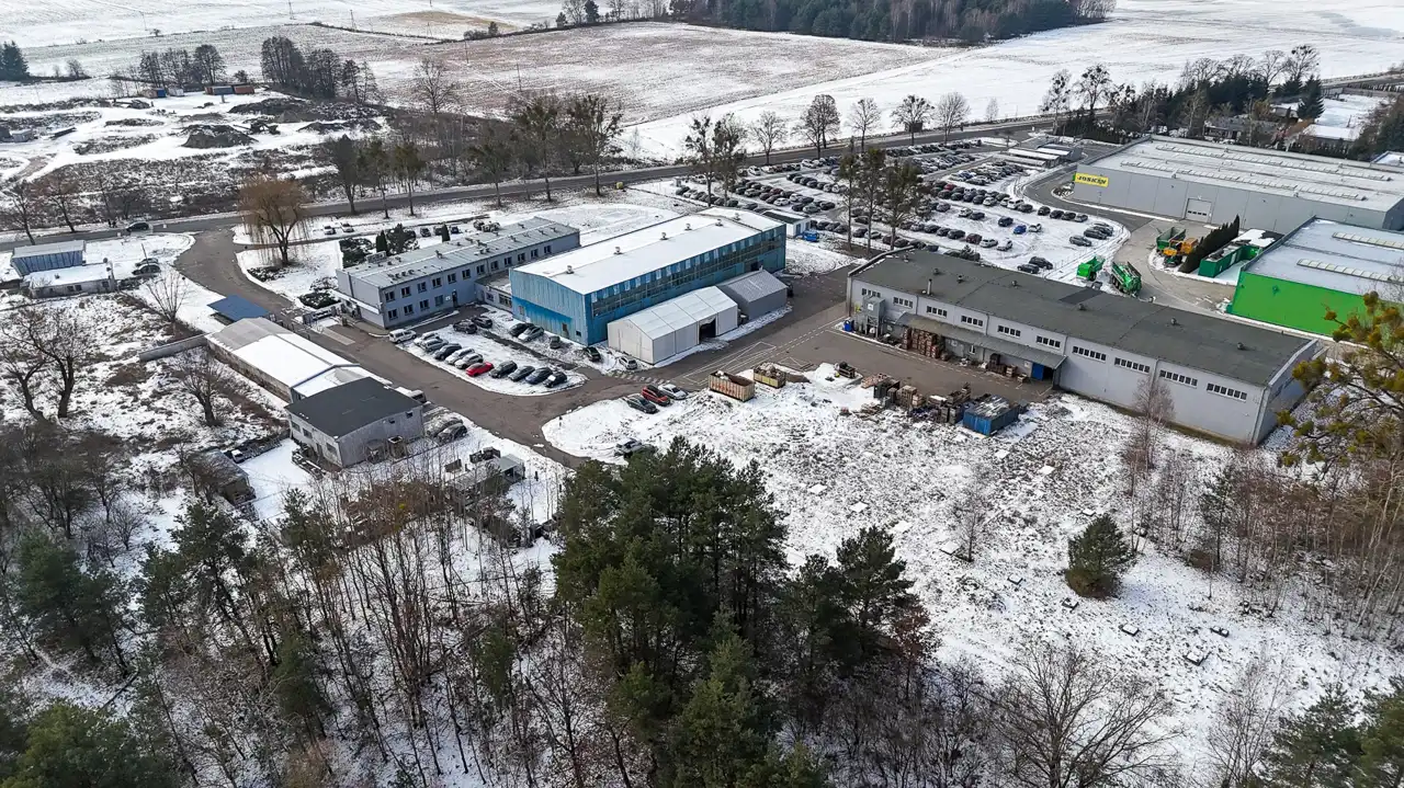 Teren: w pełni ogrodzony, utwardzony – ponad 6 400 m² placów i dróg wewnętrznych.