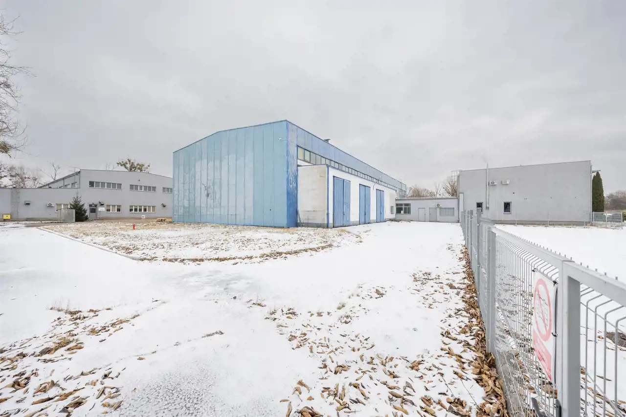 - Hala produkcyjno‑magazynowa: dł. 63,29 m, szer. 28,03 m, wys. 4,41–8,43 m