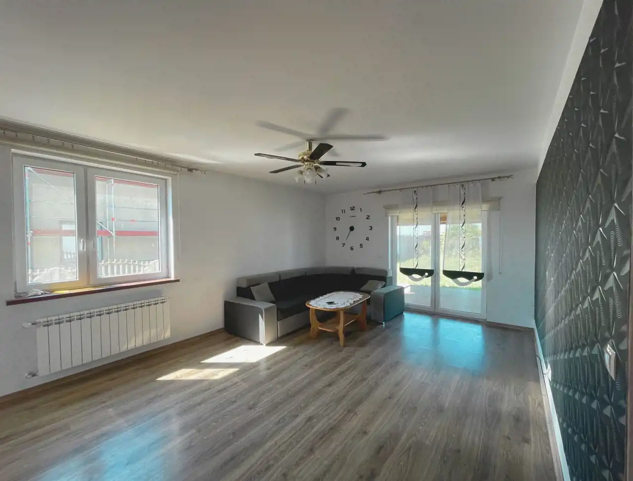 Dom oddany do użytkowania w 2020 roku, jest częściowo urządzony co daje nam możliwość własnej aranżacji. Podstawowym materiałem wykorzystanym do jego budowy były bloczki gazobeton. Ściany zewnętrzne zostały ocieplone styropianem (15 cm grafit). Dach pokryty dachówką ceramiczną, zadeskowany ocieplony wełną 30cm, podbitka z oświetleniem.