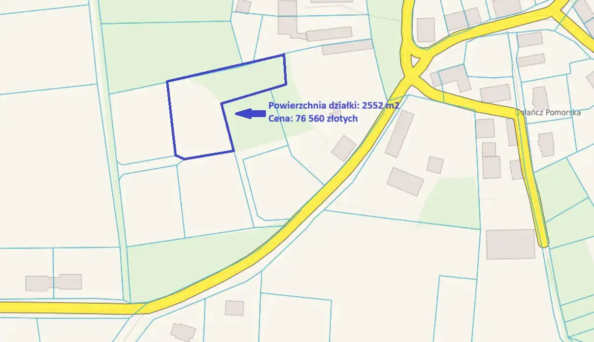 Oferujemy Państwu na sprzedaż działkę budowlaną o powierzchni 2552 m2 w cenie 76 560 złotych, znajdującą się w Gołańczy Pomorskiej oddalonej o 32 km od miejscowości nadmorskiej Kołobrzeg. Działka położona jest w malowniczej okolicy, w sąsiedztwie domków jednorodzinnych. Działka posiada wydane warunki zabudowy - na budowę budynku mieszkalnego jednorodzinnego parterowego z możliwym poddaszem użytkowym, wraz z niezbędną infrastrukturą techniczną. Działka nieuzbrojona. Chętnie odpowiemy na Państwa pytania i Serdecznie Zapraszamy do prezentacji po wizycie w naszym biurze które znajduje się w Gryficach przy ulicy 3-go Maja 10 (przy sklepie Biedronka na przeciwko sądu) lub po uprzednim kontakcie pod numerem telefonu: 509 895 285 lub 885 535 666 .