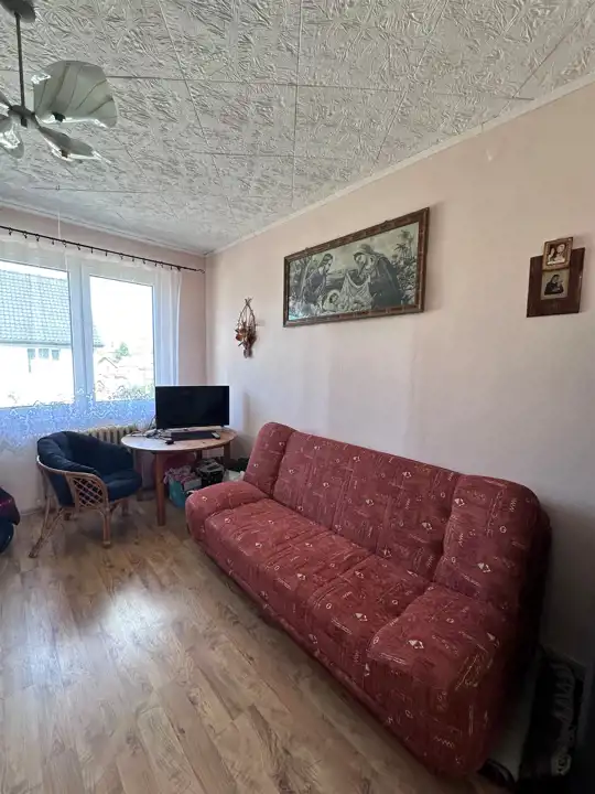 Mieszkanie na pierwszym piętrze, który znajduję się w spokojnej, zielonej części Trzebiatowa, przy stadionie miejskim i parku.