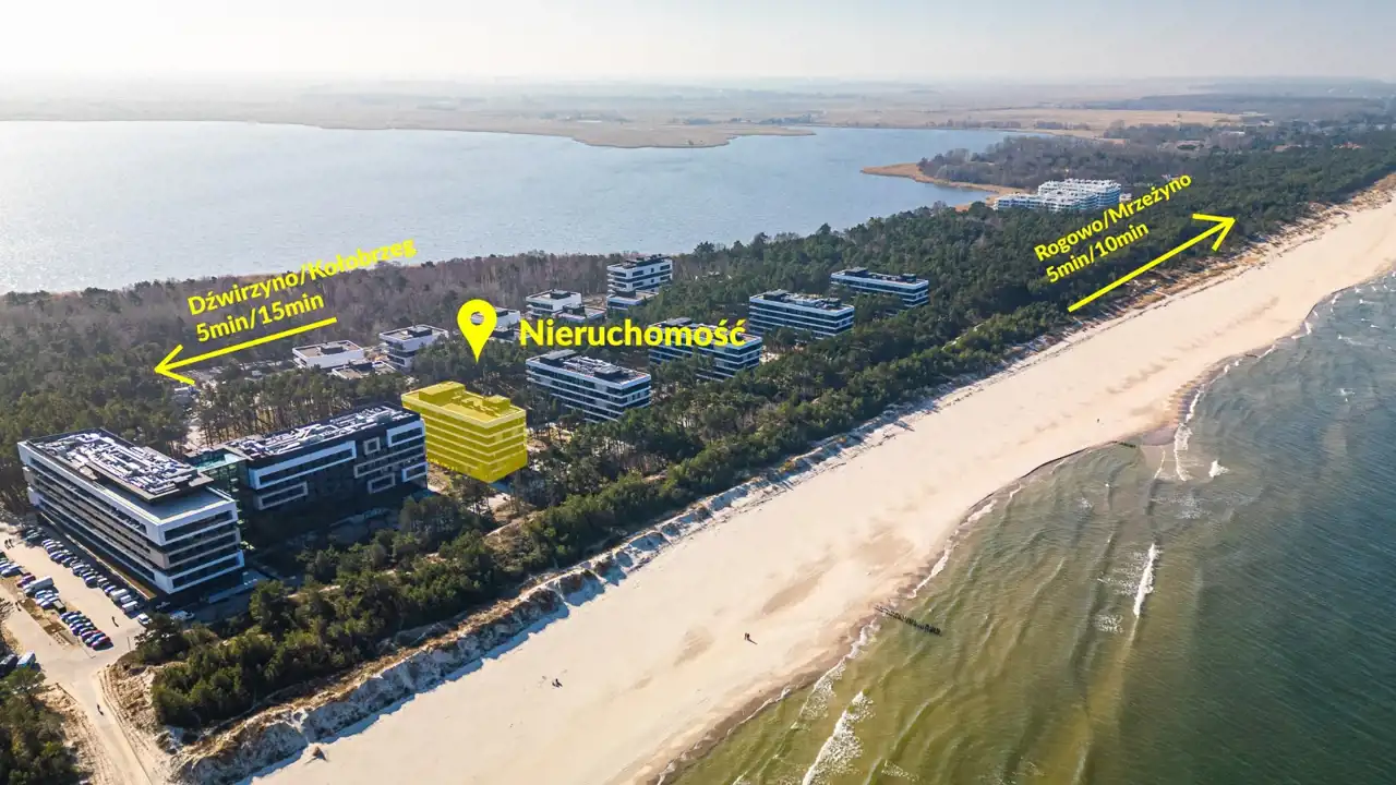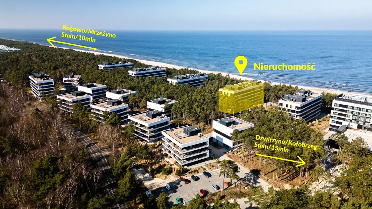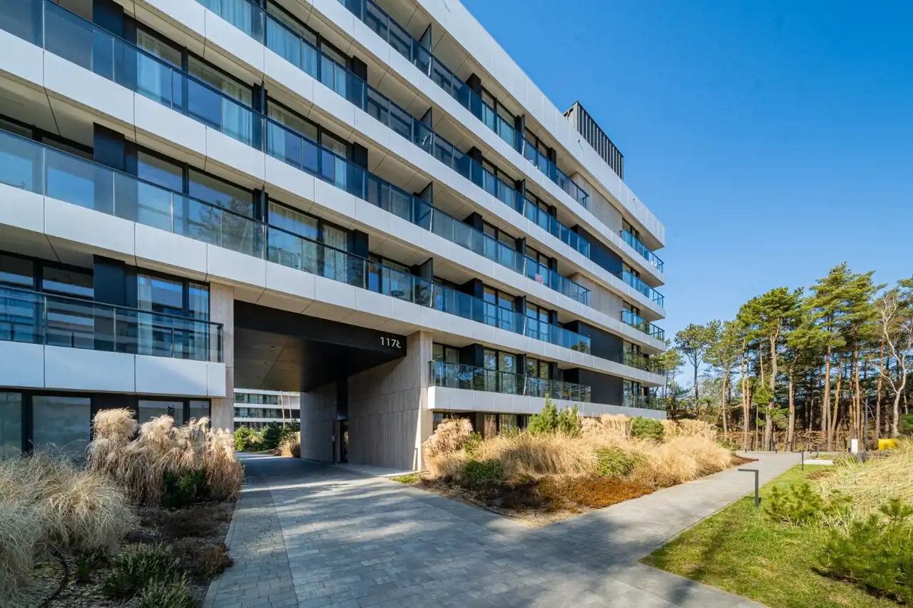 Apartament położony jest blisko morza , to zbudowany w nowoczesnym stylu resort posiadający duże przestronne terasy z których można podziwiać piękno, malowniczych nadmorskich miejscowości. Przyjazny dla mieszkańców sposób zaprojektowania lokali jak i terenu z własnym zejściem na czystą plaże, umożliwi odnaleźć schronienie przed zgiełkiem dużych miast oraz pozwoli cieszyć się otaczającą przyrodą , wśród pięknych sosnowych lasów, po widoki morza Bałtyckiego.