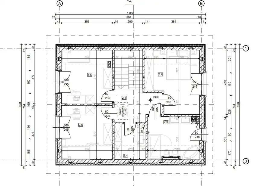 Na poddaszu znajdują się 3 ustawne pokoje, każdy z dużymi drzwiami balkonowymi, łazienka oraz garderoba.