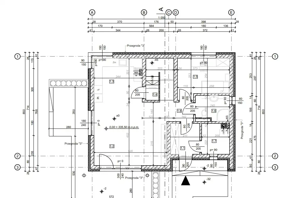 Dom został wybudowany z betonu komórkowego, (Termalica) i przykryty dachówka betonową płaską firmy Brass.