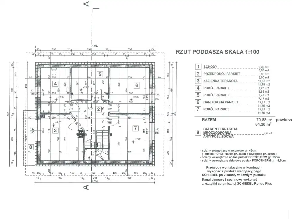 - Pokrycie dachu dachówka ceramiczna
