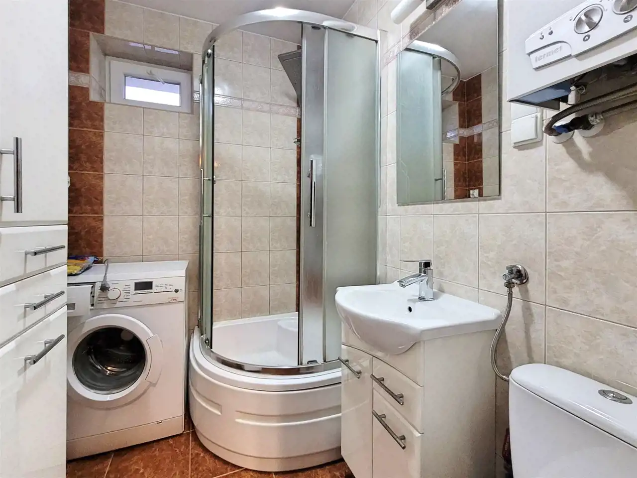 Dodatkowym atutem jest pralka zainstalowana w łazience, co z pewnością zaoszczędzi początkowych wydatków przyszłym najemcom.