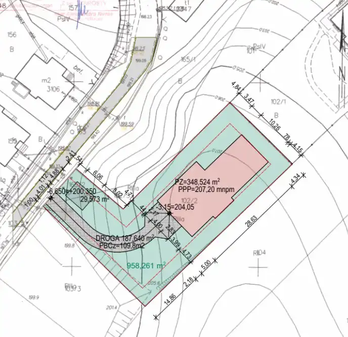 Na działce został zaprojektowany dom jednorodzinny - możliwość wglądu oraz wykorzystania projektu.