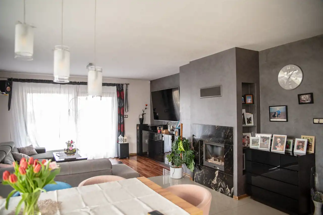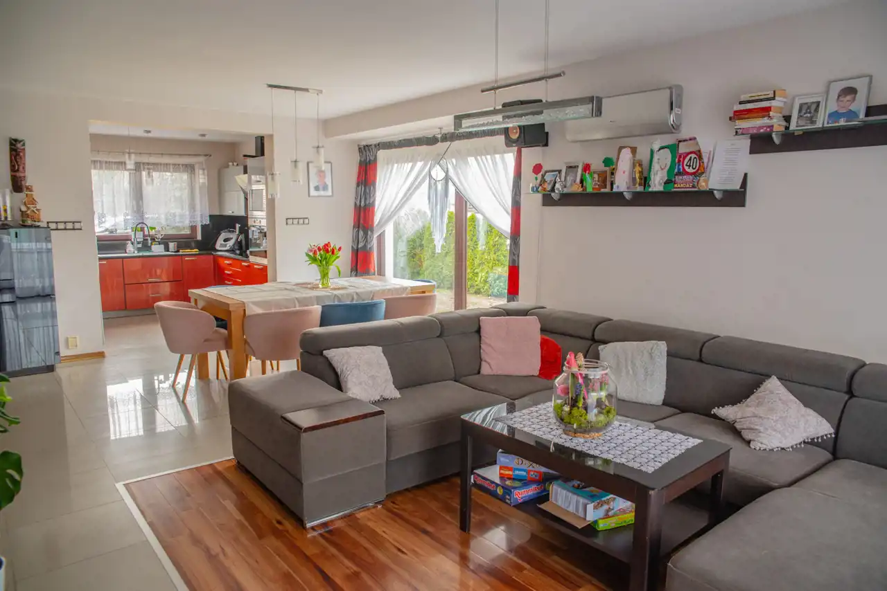 Dom łączy w sobie elegancję i funkcjonalność, a jego położenie w otoczeniu natury gwarantuje spokój i komfort codziennego życia. Idealny wybór dla rodziny szukającej harmonii pomiędzy bliskością miasta a spokojem podmiejskiej okolicy. Istnieje możliwość nabycia sąsiedniej nieruchomości - niezabudowanej działki o pow. 1019m2.