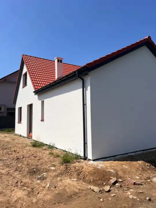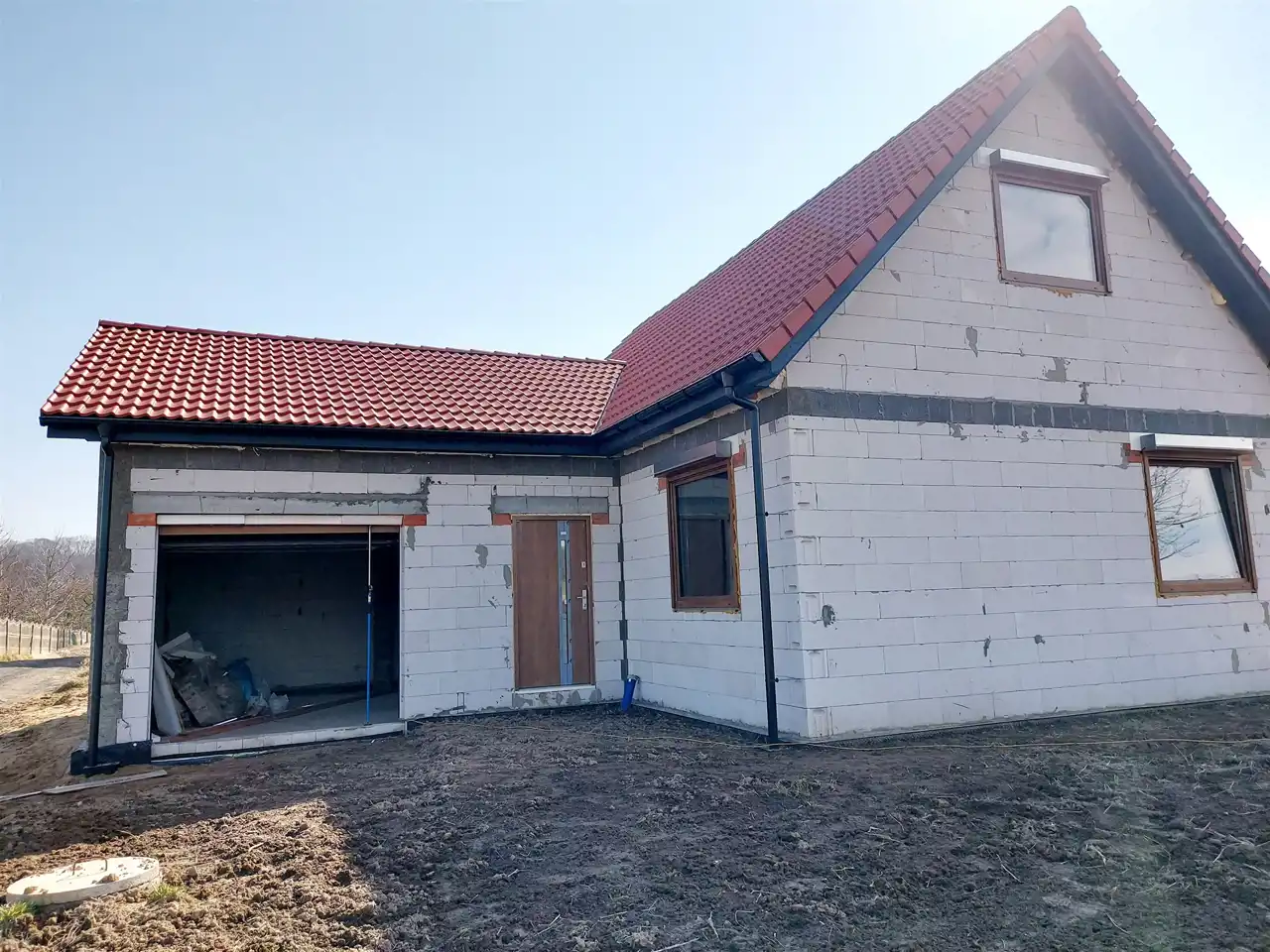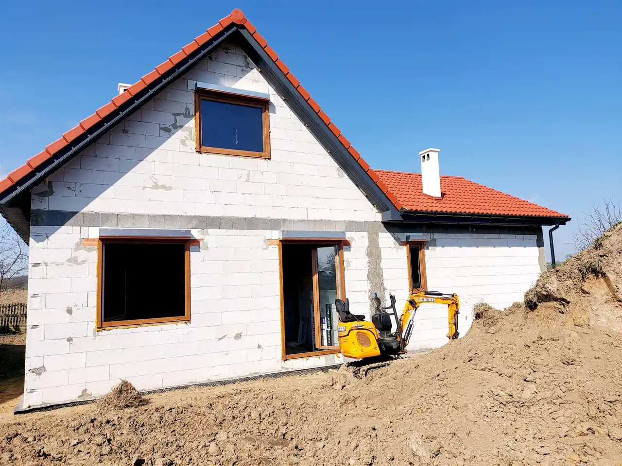 Dom w technologii tradycyjnej z bloczków gazobetonowych, z więźbą drewnianą.