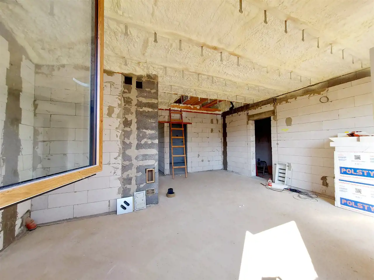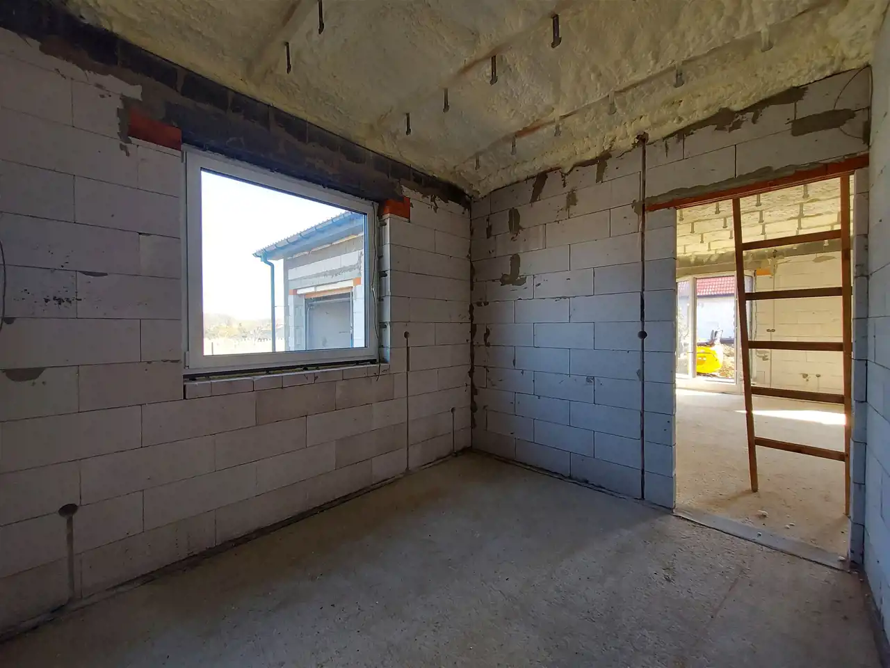 - Ściany wykonane z bloczków gazobetonowych wykończone od zewnątrz elewacją w technologii lekkiej mokrej (styropian 20cm + tynk strukturalny).