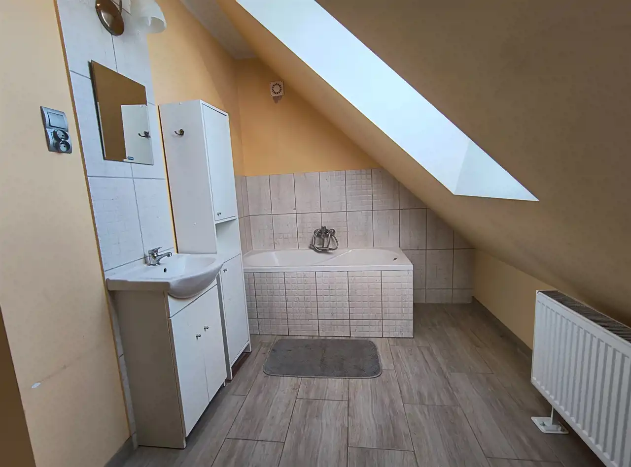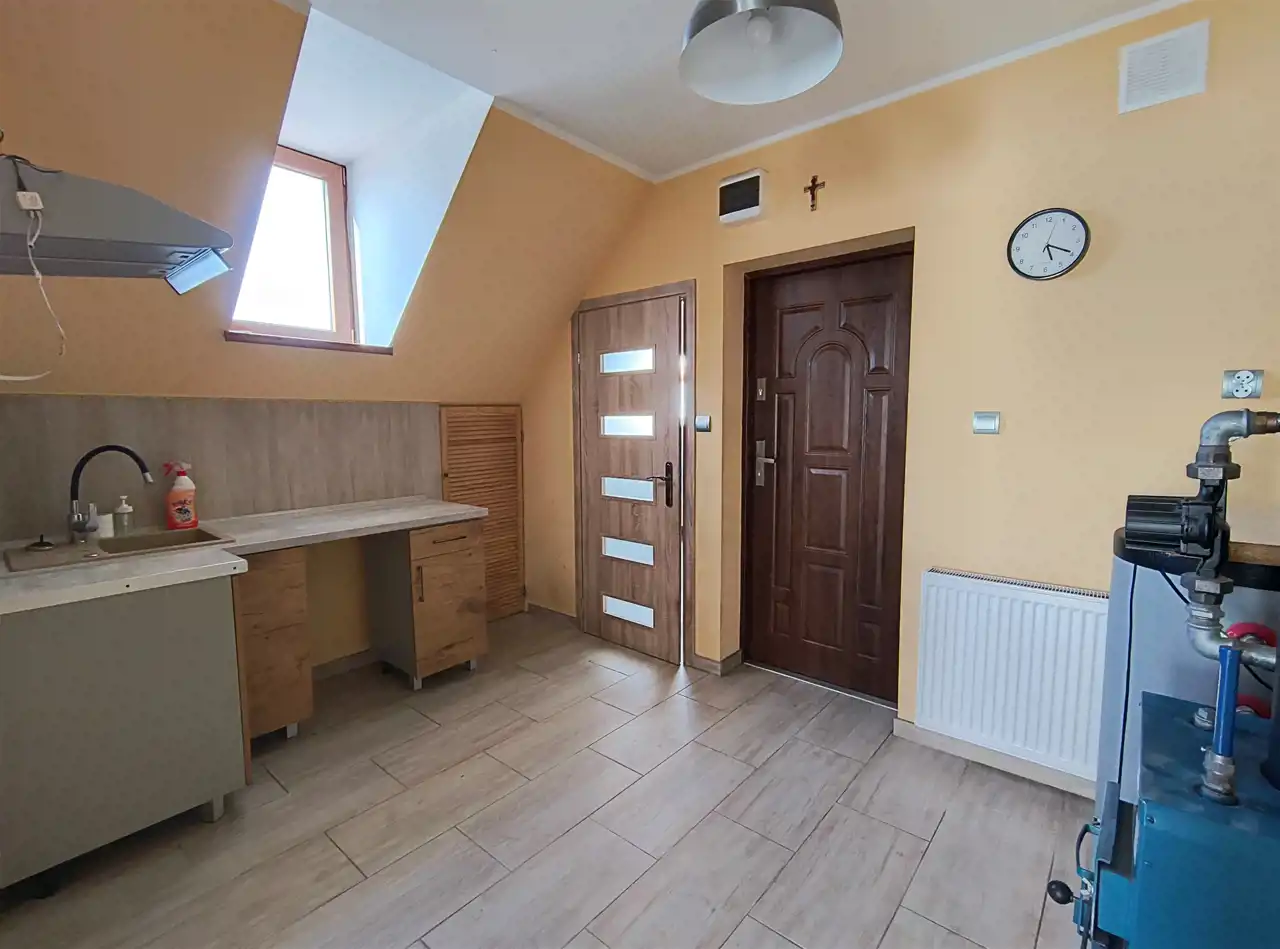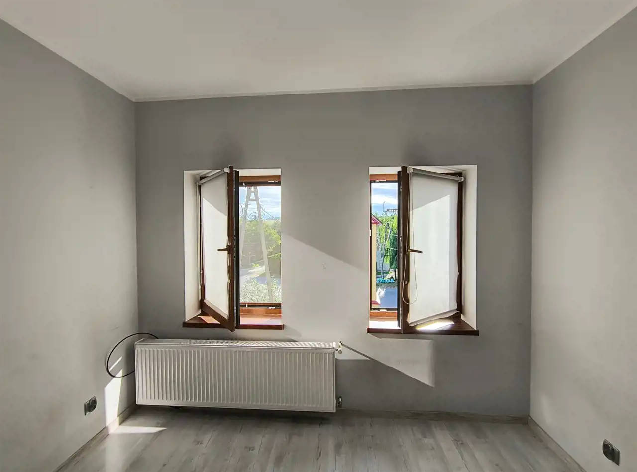 Na podłogach panele i płytki. Okna pcv z ekspozycją na południowy i północny zachód. Ogrzewanie i podgrzewanie wody - piec na paliwo stałe (węgiel/drewno). Możliwość przełączenia podgrzewania wody w lecie na elektryczne.