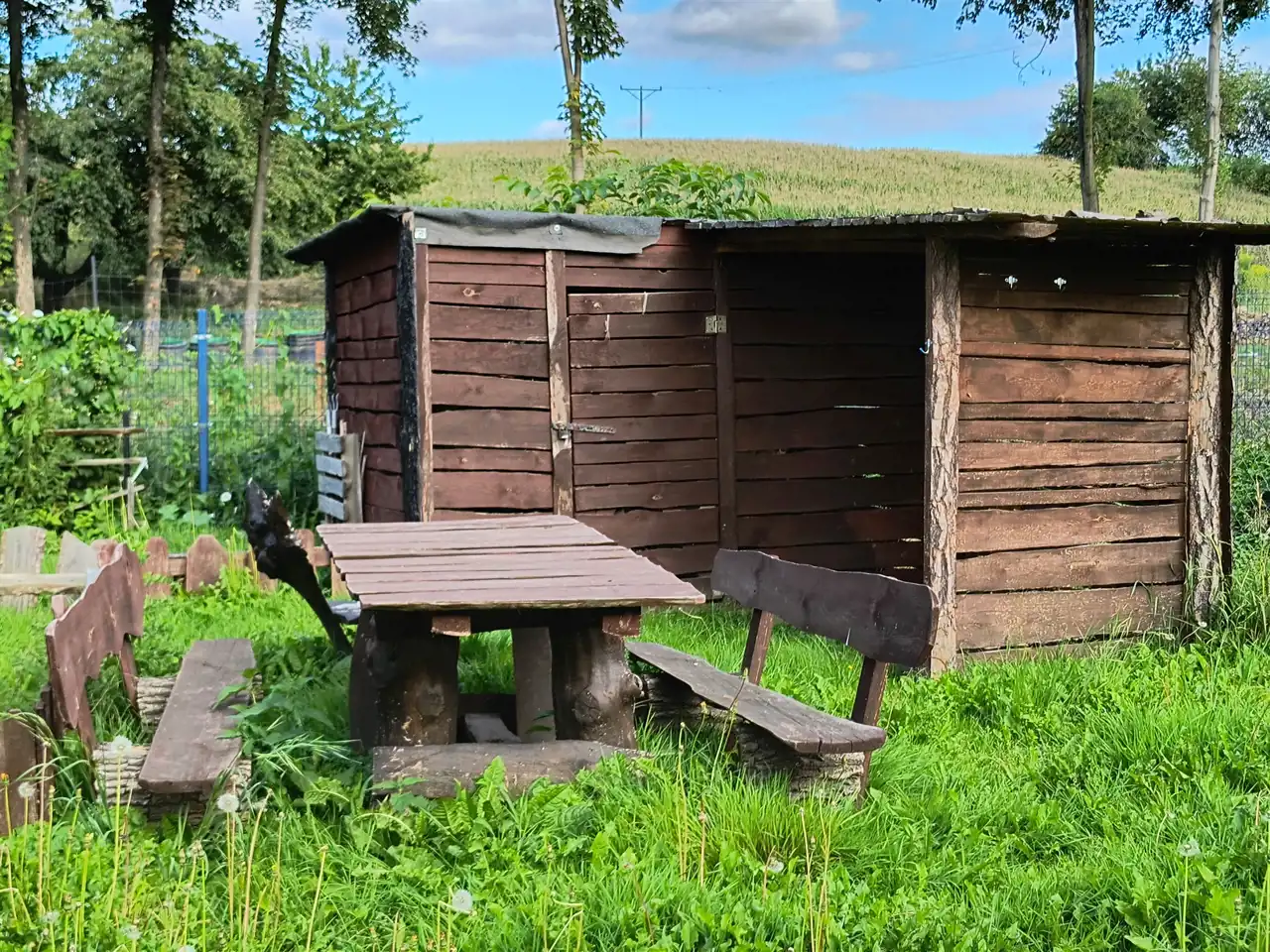 Do mieszkania przynależy ogródek o pow. ok. 100 m.kw. na osobnej KW, na zasadzie udziału w gruncie (1/12 części -cała działka o pow. 2322 m.kw. podzielona pomiędzy mieszkańców budynku) oraz pomieszczenie gospodarcze w oddzielnym parterowym budynku przed domem.