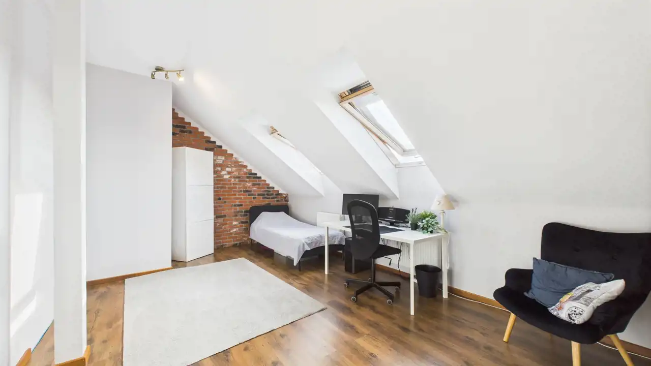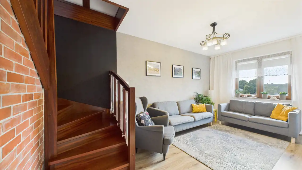 Mieszkanie wykończone, co pozwala na szybką aranżację przez nowych właścicieli. Wykonane drewniane schody umożliwiające wejście na drugim poziom. Ogrzewanie podłogowe w łazience, kuchni oraz w przedpokoju. Zaaranżowany strych jako dodatkowa powierzchnia do przechowywania (nieużytkowy) - ocieplony oraz wyłożony deskami.