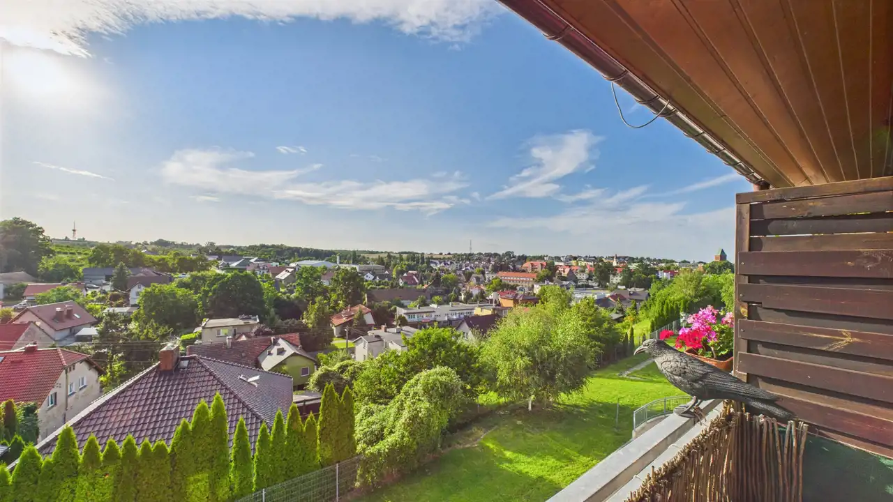 Powierzchnia lokalu rozłożona jest na dwóch poziomach, co również pozwala na naturalne wydzielenie części dziennej/gościnnej od prywatnych sypialni. W mieszkaniu znajdują się 2 łazienki, które ułatwiają funkcjonowanie domownikom. Ogrzewanie z pieca dwufunkcyjnego gazowego. Do lokalu przynależy balkon o powierzchni ok. 5 m2 z ekspozycją zachodnią, dzięki czemu można podziwiać piękne zachody słońca. Dodatkowo do mieszkania przynależy komórka lokatorska o powierzchni 4,63 m2.