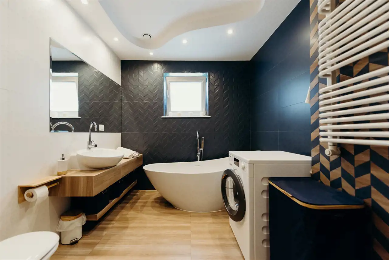- Wysoka jakość materiałów: marmur, kamień naturalny, drewno eukaliptusowe.
