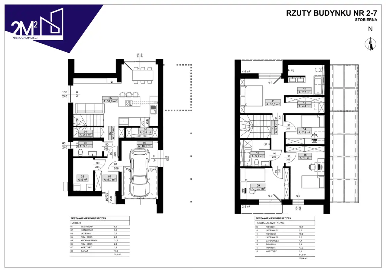 - każdy budynek posiada garaż jednostanowiskowy w bryle budynku
