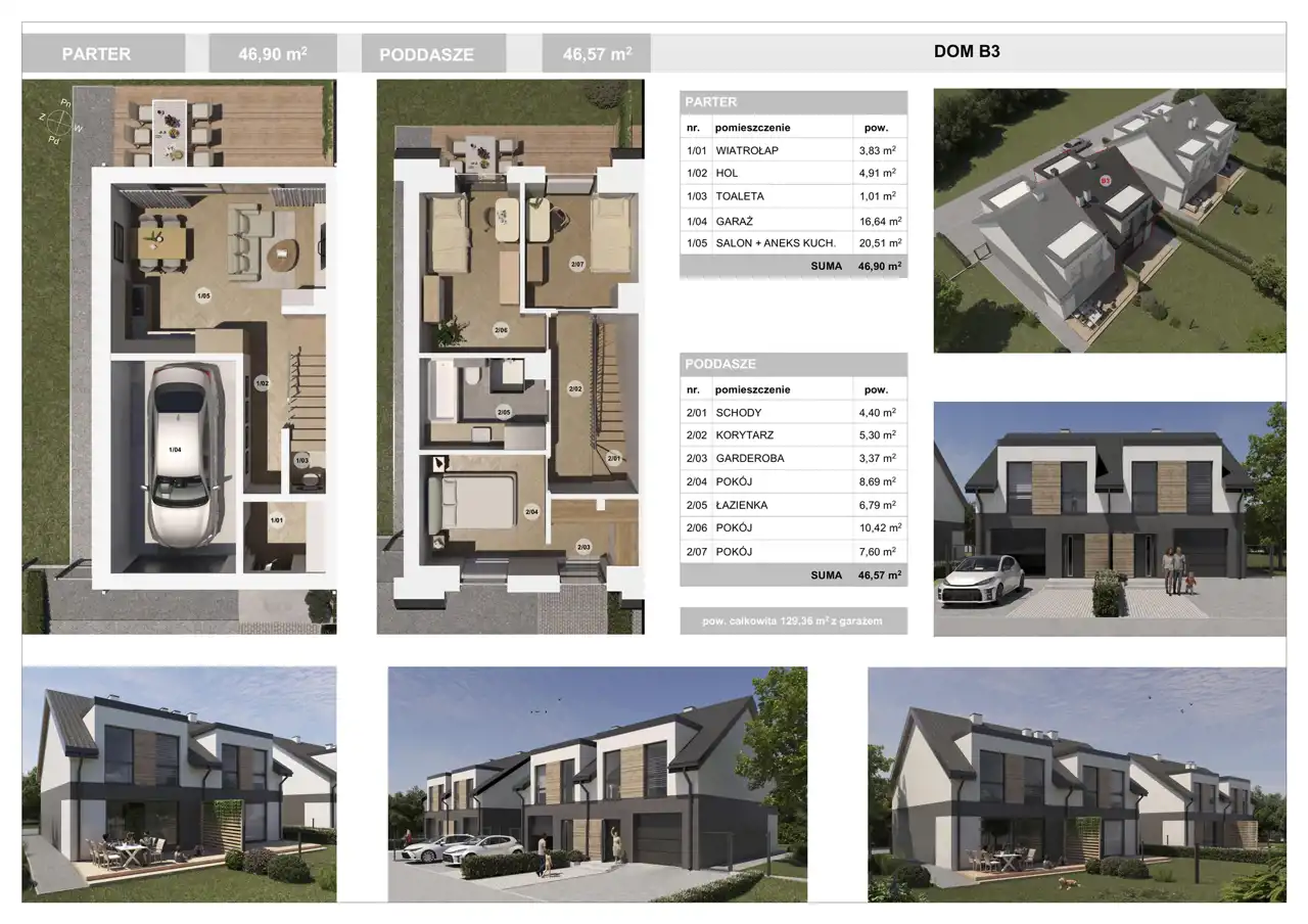 - Powierzchnia całkowita: 129,36 m²