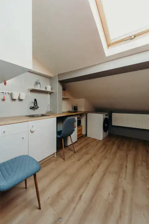 - Dwa pokoje (9 m² i 8 m²)