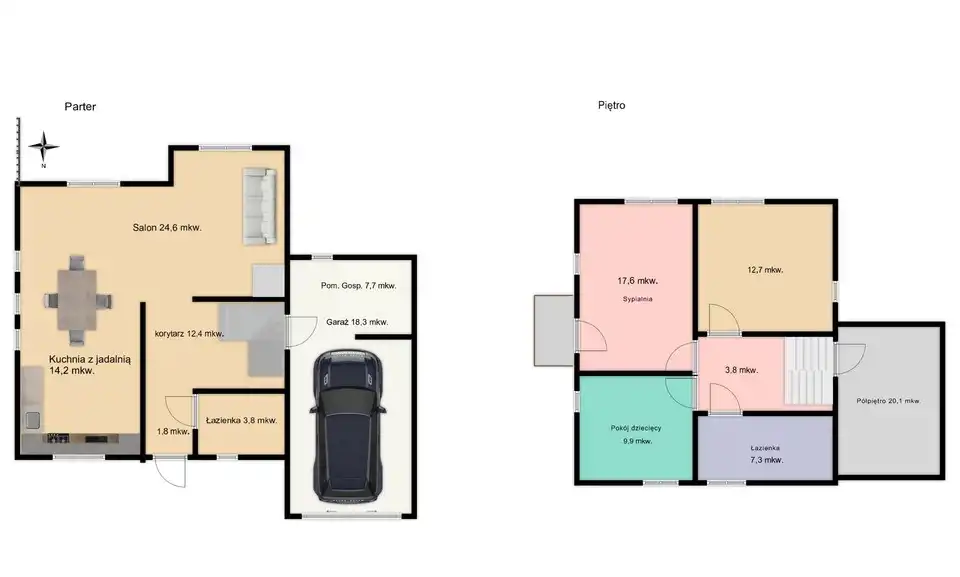- 2 sypialnie, 17,6 mkw.i 12,7 mkw,,