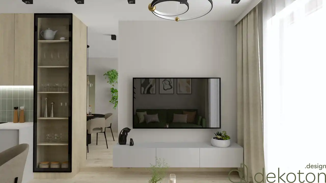 - salon z aneksem kuchennym 23,88 m2 z wyjściem na balkon