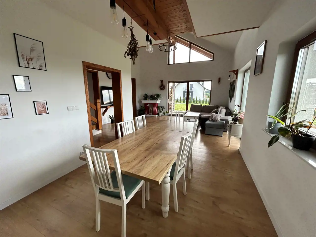 Dom jest wybudowany z myślą o jego mieszkańcach, oprócz rozwiązań ograniczających zużycie energii elektrycznej znajdziemy tutaj także porządne, masywne antywłamaniowe drzwi wejściowe, wysokiej jakości okna 3 szybowe z roletami antywłamaniowymi (na parterze), a także ekrany termiczne pod dachem. Ponadto w piwnicy zastosowano studnie doświetlające pomieszczenia, dzięki czemu w ciągu dnia w piwnicy jest jasno i przyjemnie. Powierzchnia całkowita nieruchomości to 288 m2, natomiast użytkowa powierzchnia to około 145 m2.