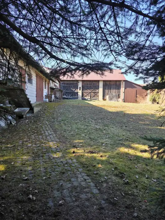 Działka o powierzchni 3087 m² z murowanym domem ok. 280 m² oraz budynkami gospodarczymi.