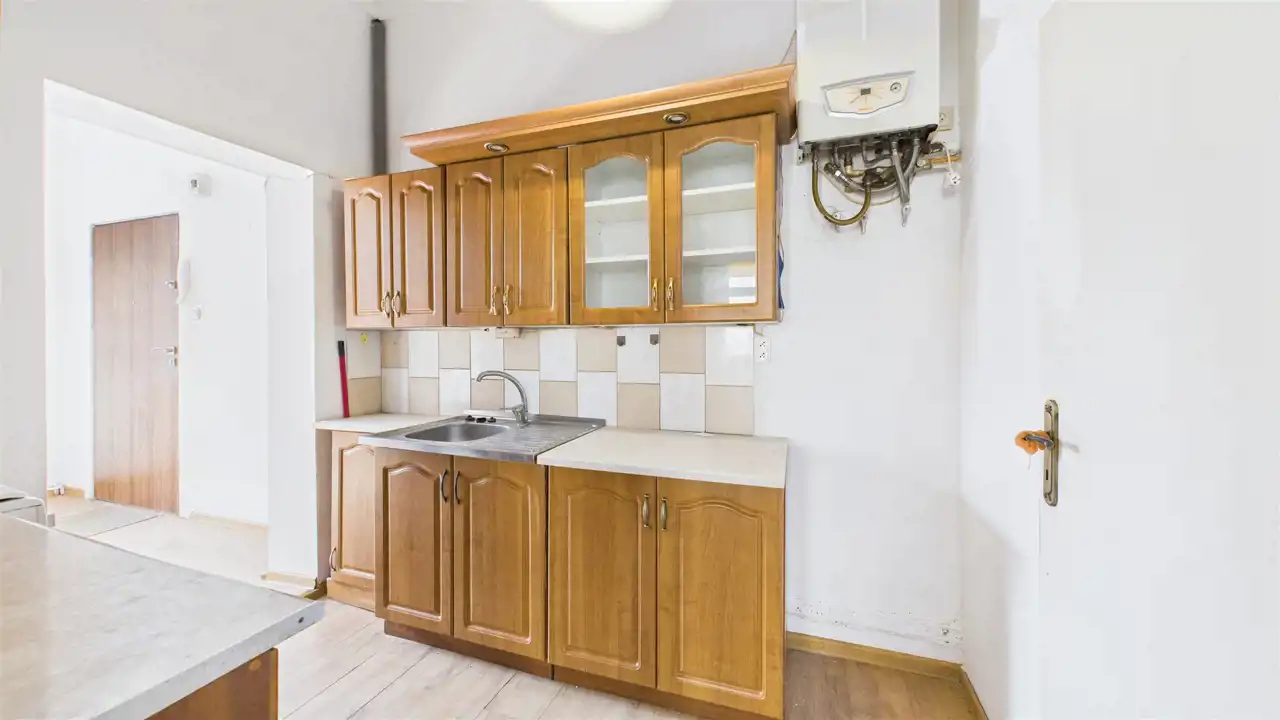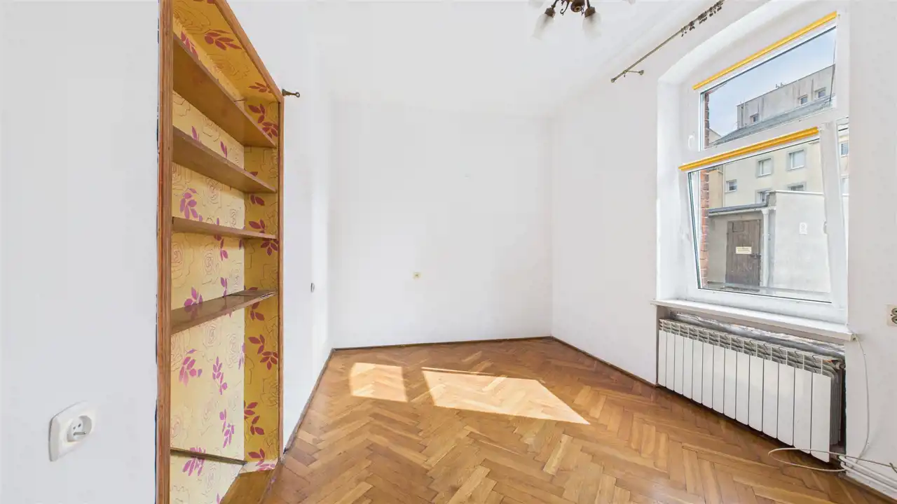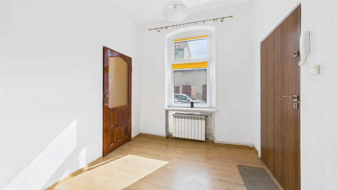 Mieszkanie znajduje się na parterze kameralnej kamienicy z czerwonej cegły. Powierzchnia użytkowa lokalu wynosi 54,5m2. Składa się z dwóch pokoi, przejściowej kuchni i łazienki z WC.