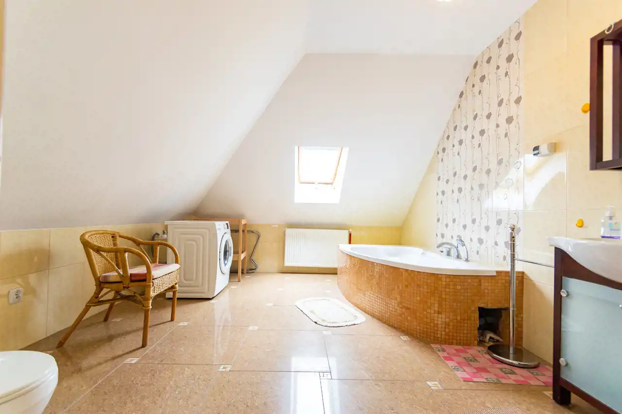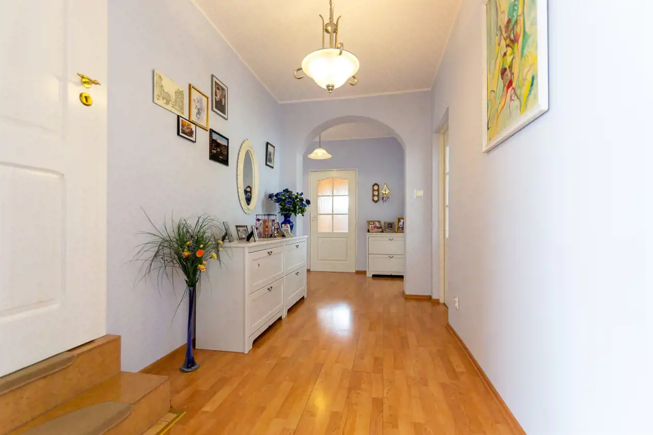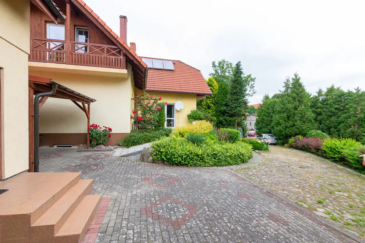 - w piwnicy z osobnym wejściem na posesje o powierzchni 40m2 (pokój z aneksem kuchennym, sypialnia, łazienka, wiatrołap)