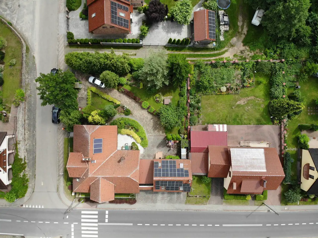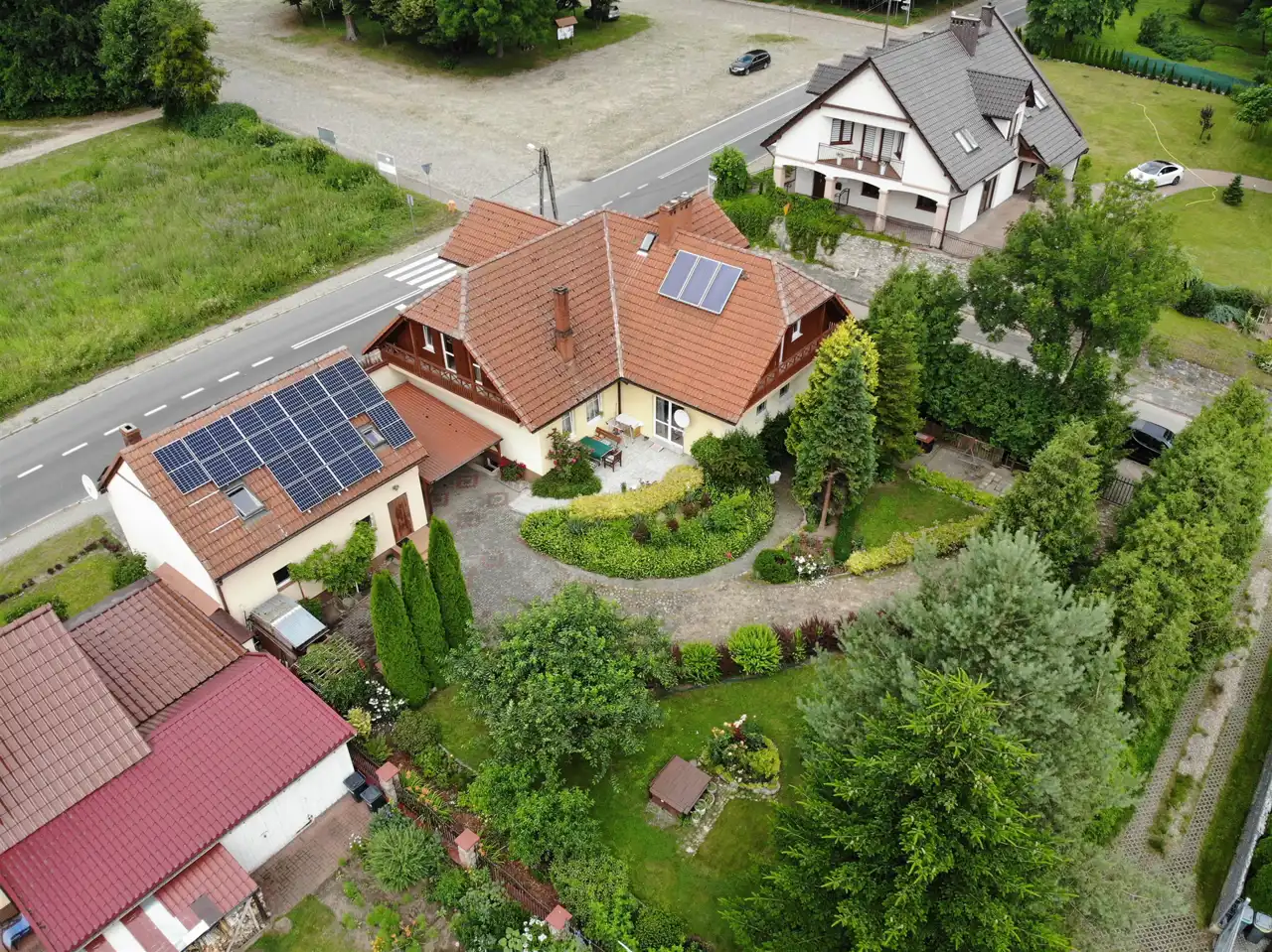 Na dachu budynku mieszkalnego 3 panele słoneczne - solary do ogrzewania wody użytkowej.
