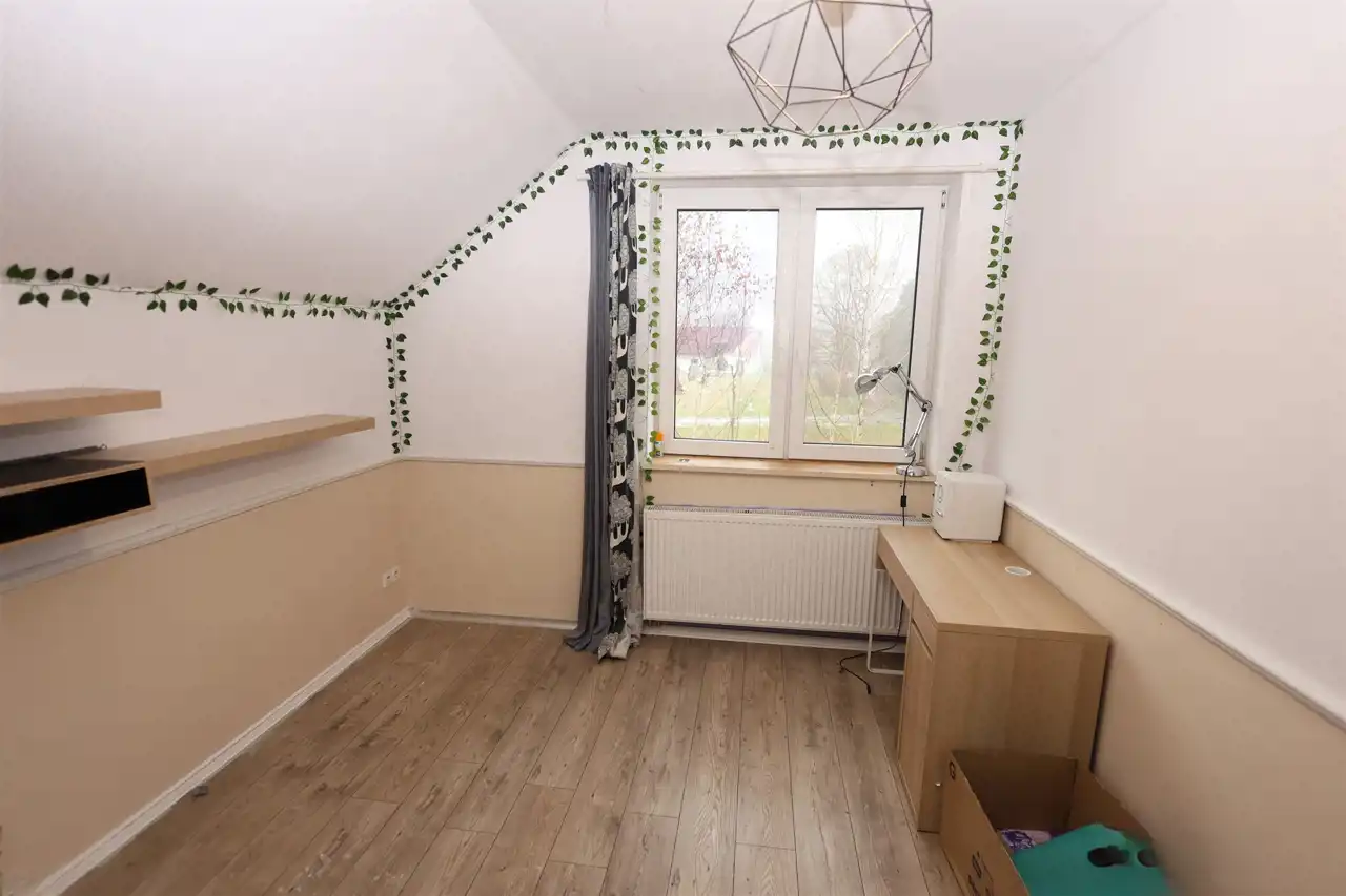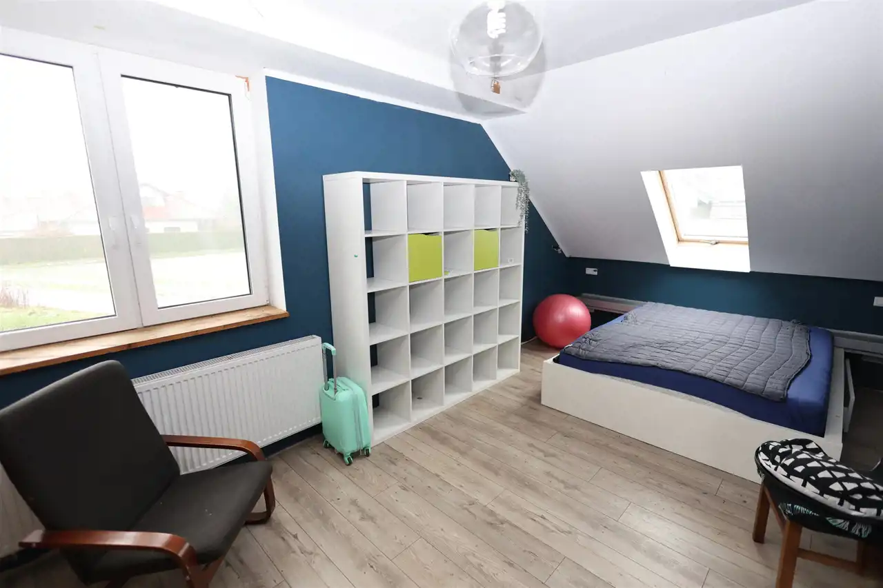 Na poddaszu cztery jasne sypialnie oraz komfortową łazienkę. Główna sypialnia posiada własną garderobę.