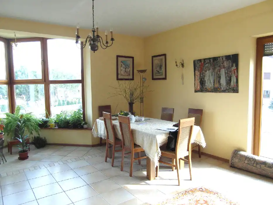 Do sprzedania atrakcyjnie położony pod lasem, dom wolnostojący w dzielnicy willowej w Kotorzu Małym.Na parterze znajduje się salon z kominkiem połączony z otwartą dużą kuchnią, spiżarka, pokój, wygodna łazienka; na półpiętrze znajduje się pokój (gabinet). Na piętrze znajdują się 4 pokoje oraz łazienką z wc, garderoba.Dom w całości podpiwniczony,100m2 wysokich pomieszczeń do zagospodarowania na pralnię, garderobę, pomieszczenie biurowe. Pomieszczenia wyłożone kaflami, na ścianach gładź gipsowa.Na parterze zainstalowano ogrzewanie podłogowe.Dom wybudowany w technologii tradycyjnej : cegła ceramiczna, dachówka ceramiczna, budynek otynkowany i ocieplony wełną mineralną, nowe okna drewniane, rolety zewnętrzne. Media miejskie: Ogrzewanie oraz ciepła woda, pompa ciepła.Na posesji znajduje się garaż na dwa samochody z automatycznie podnoszoną bramą.Ogródek ładnie zagospodarowany.Dodatkowym atutem jest mała odległość do Opola i dogodny dojazd.Okolice charakteryzuje piękna przyroda, cisza i czyste powietrze. Dom otoczony jest lasami w pobliżu znajdują się jeziora turawskie. Tereny doskonałe do rekreacji i wypoczynku.