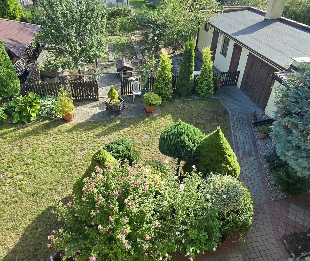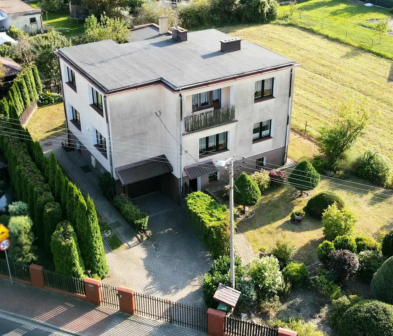 Dom posadowiony na działce o powierzchni 993 m2. Powierzchnia użytkowa domu to 210 m2. Na działce znajduje się budynek gospodarczy o powierzchni 45 m2.