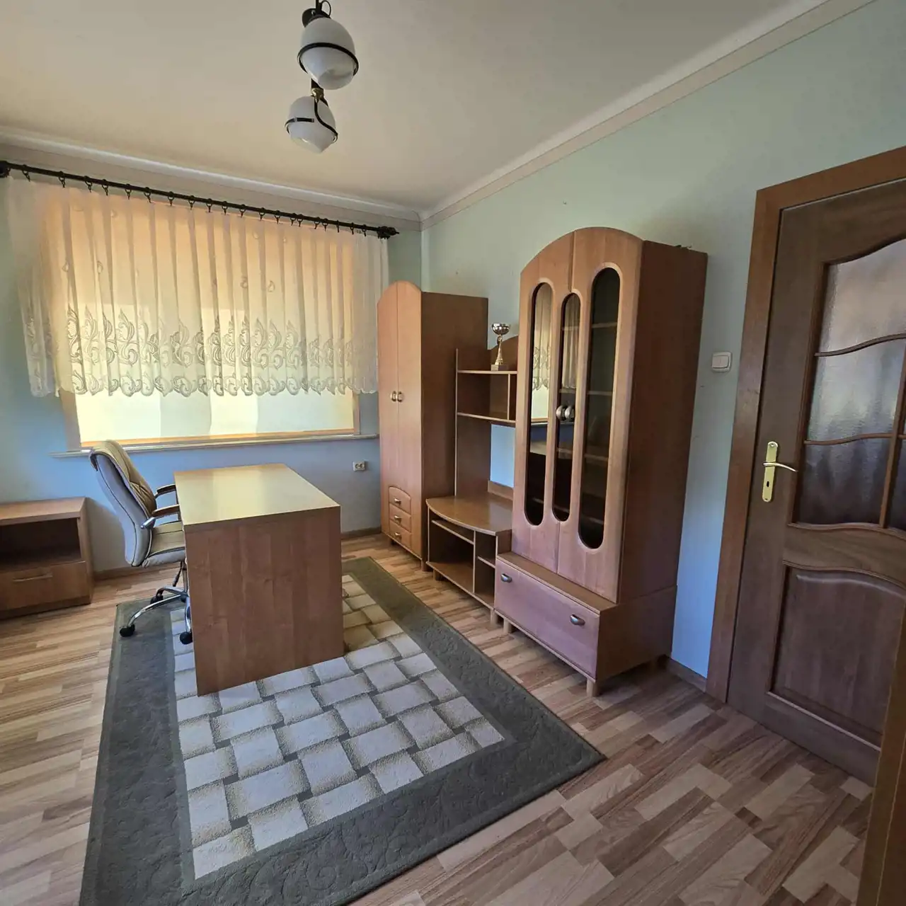Dom jest przestronny, idealny dla dużej rodziny z uwzględnieniem wszystkich potrzeb do komfortowego mieszkania. Na parterze mieszczą się salon, duża jadalnia, kuchnia, gabinet, sypialnia i łazienka. Na piętrze znajdują się 4 pokoje, pomieszczenie na kuchnię oraz łazienka z wanną. W przedpokoju mieści się duża szafa w zabudowie. Na piętrze od strony ulicy mieści się balkon typu loggia, zaś od strony podwórka usytuowany jest duży zadaszony taras.